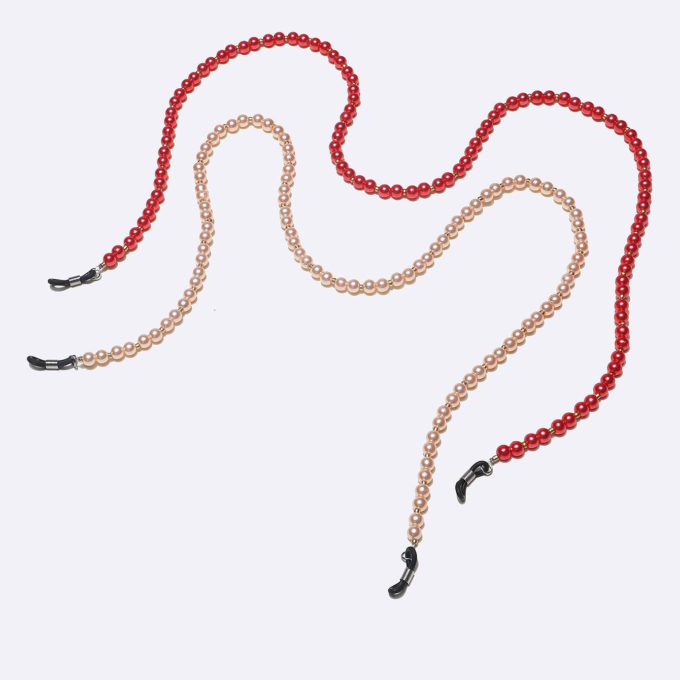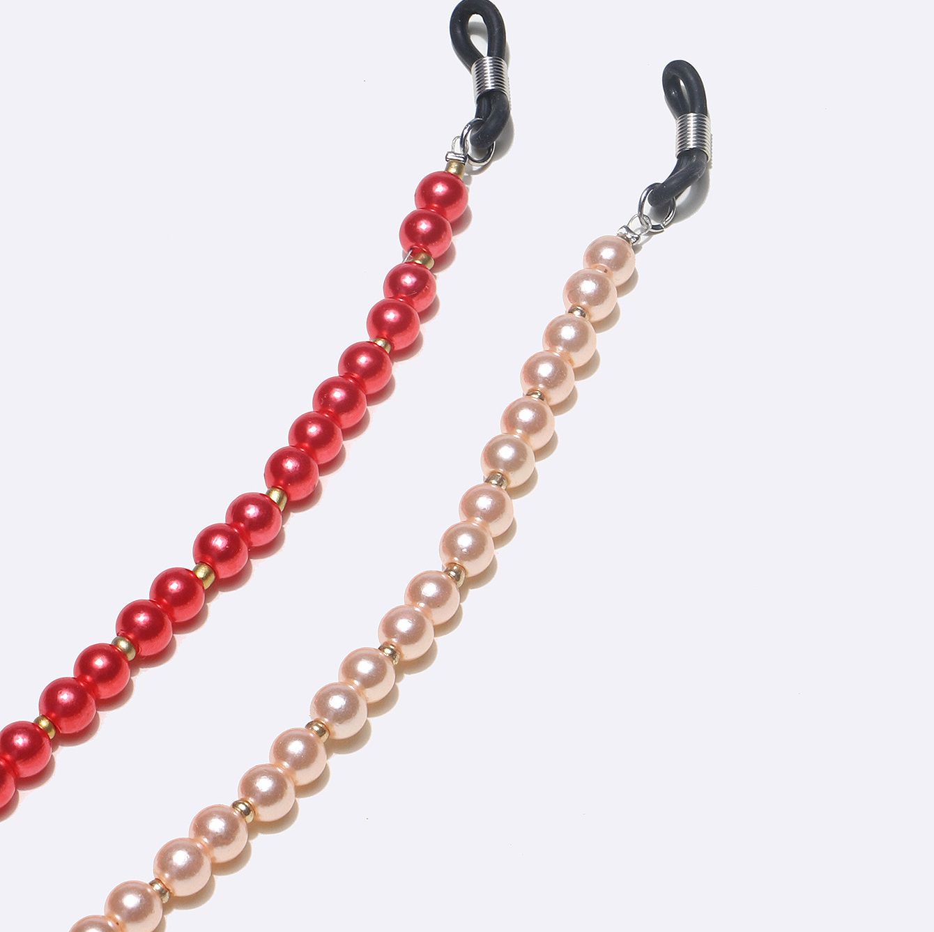 Металлическая нескользящая цепочка, набор из 2-х цепочек с золотым и красным жемчугом, для очков и масок GM112