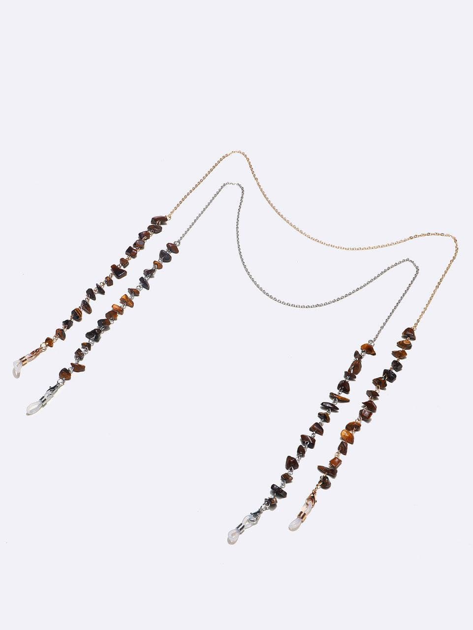 Набор из двух золотых и серебряных цепочек для очков с натуральными камнями GM128