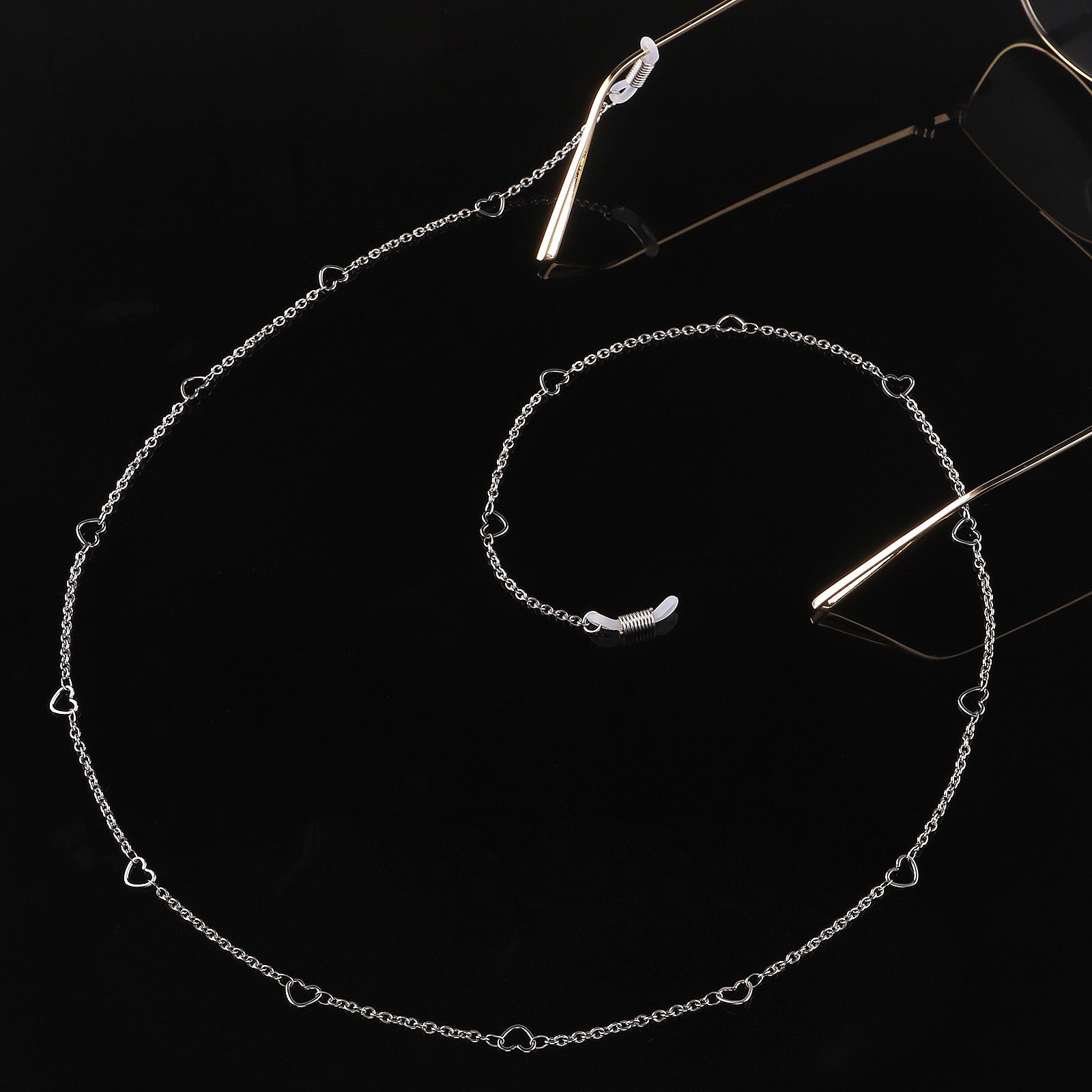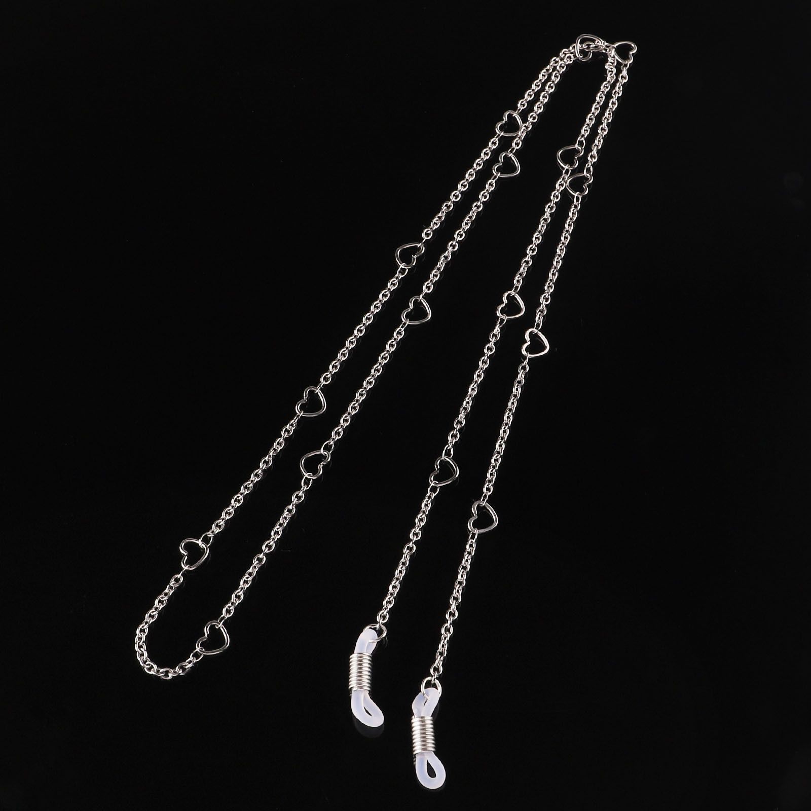 Металлическая нескользящая цепочка стального цвета, с сердцем, для очков и масок GS012