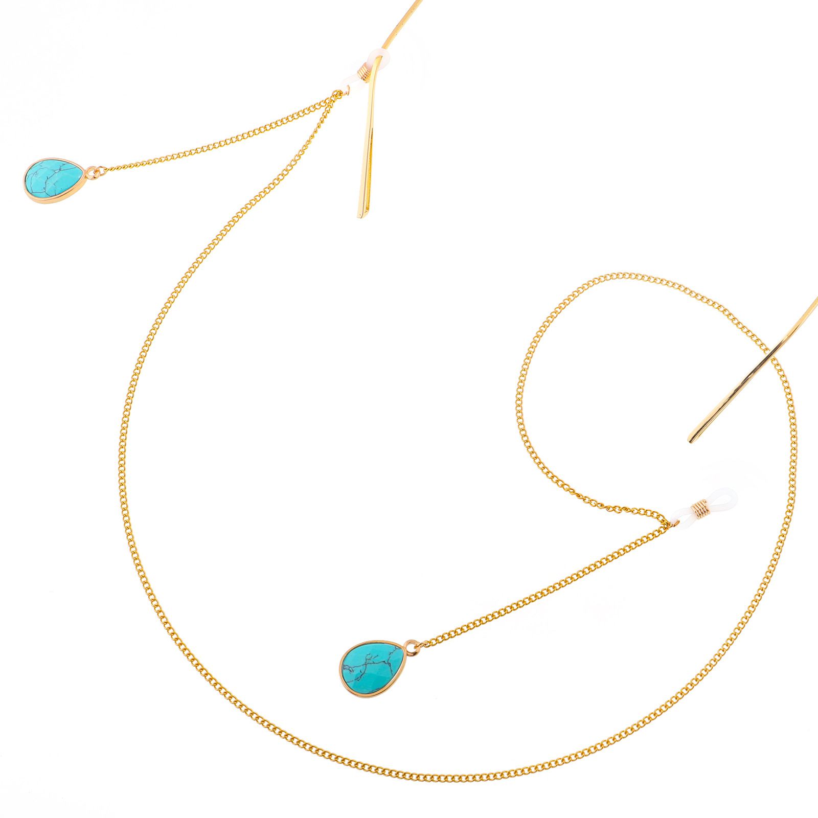 Металлическая нескользящая золотая цепочка, с бирюзовой подвеской, для очков и масок GS020