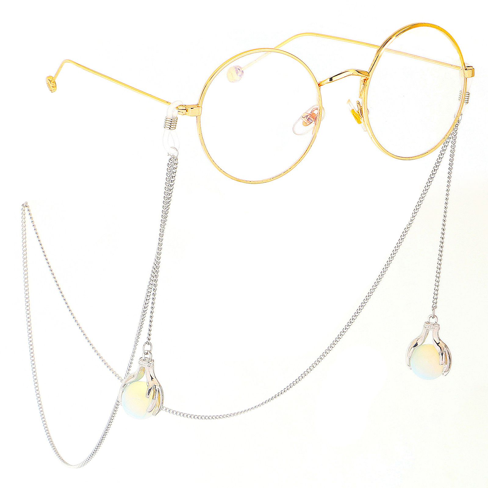 Металлическая нескользящая цепочка с серебрянным покрытием, с кулоном из опала, для очков и масок GS022