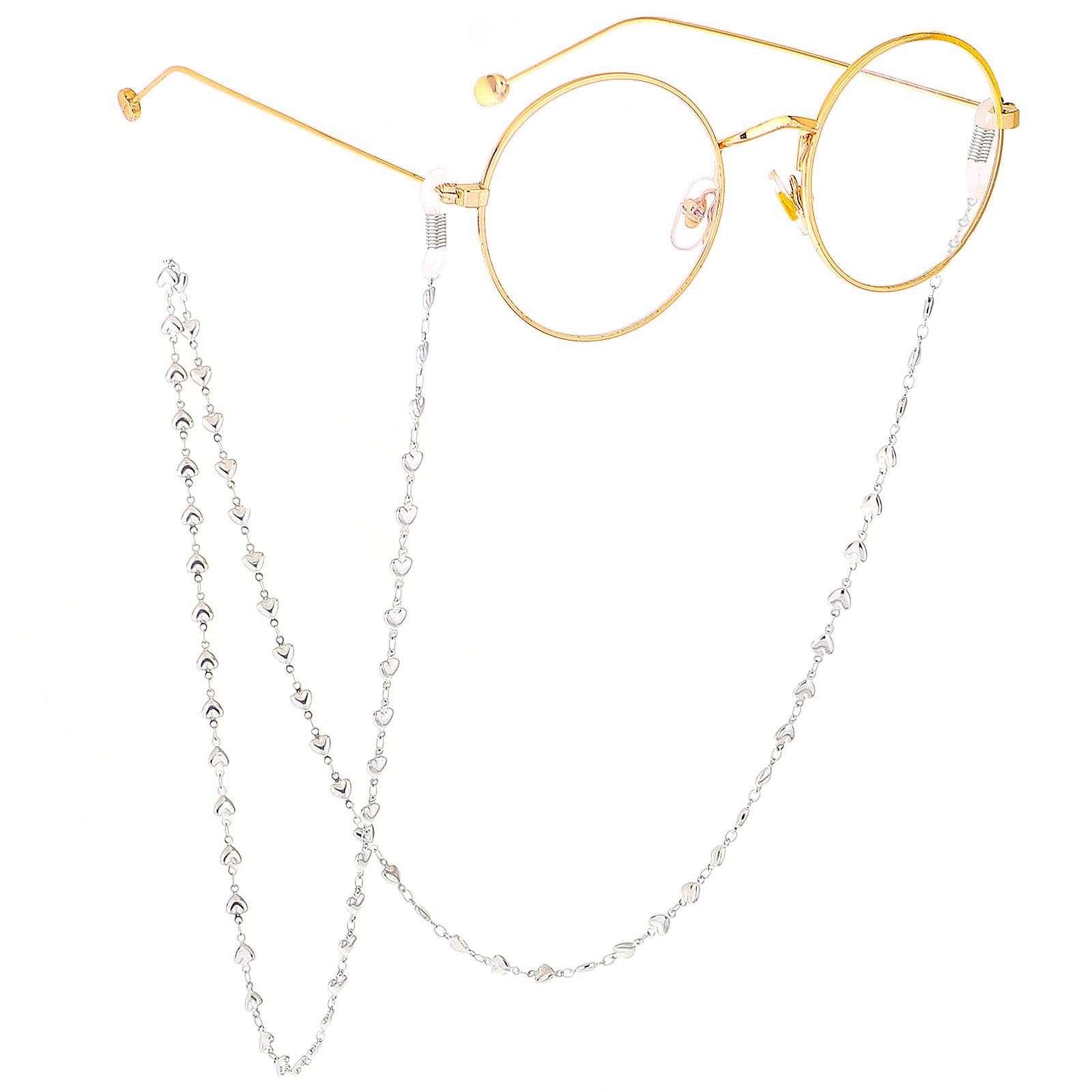 Металлическая нескользящая цепочка с серебрянным покрытием, с сердцем, для очков и масок GS028
