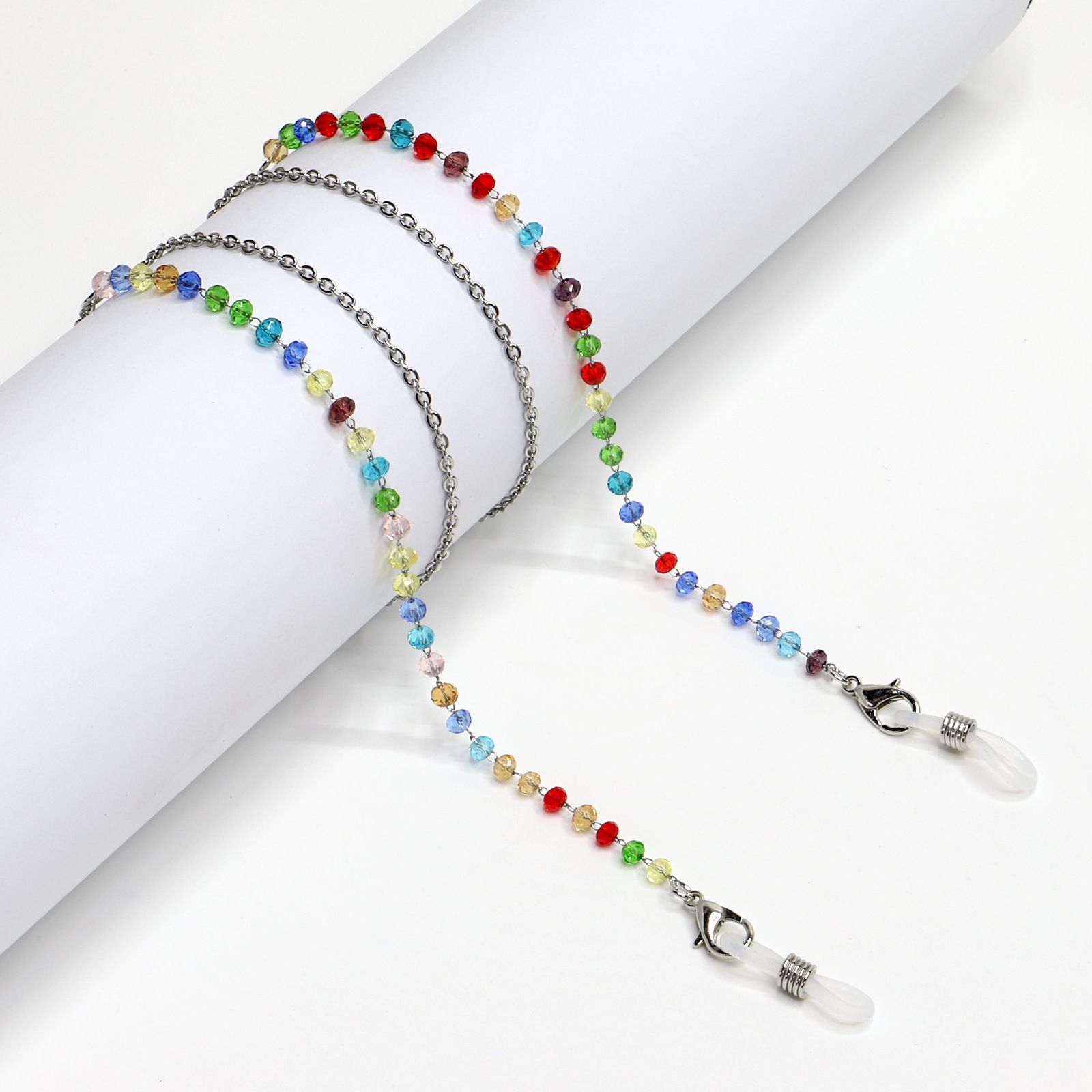 Металлическая нескользящая цепочка серебряного цвета, с цветными кристаллами, для очков и масок GS035