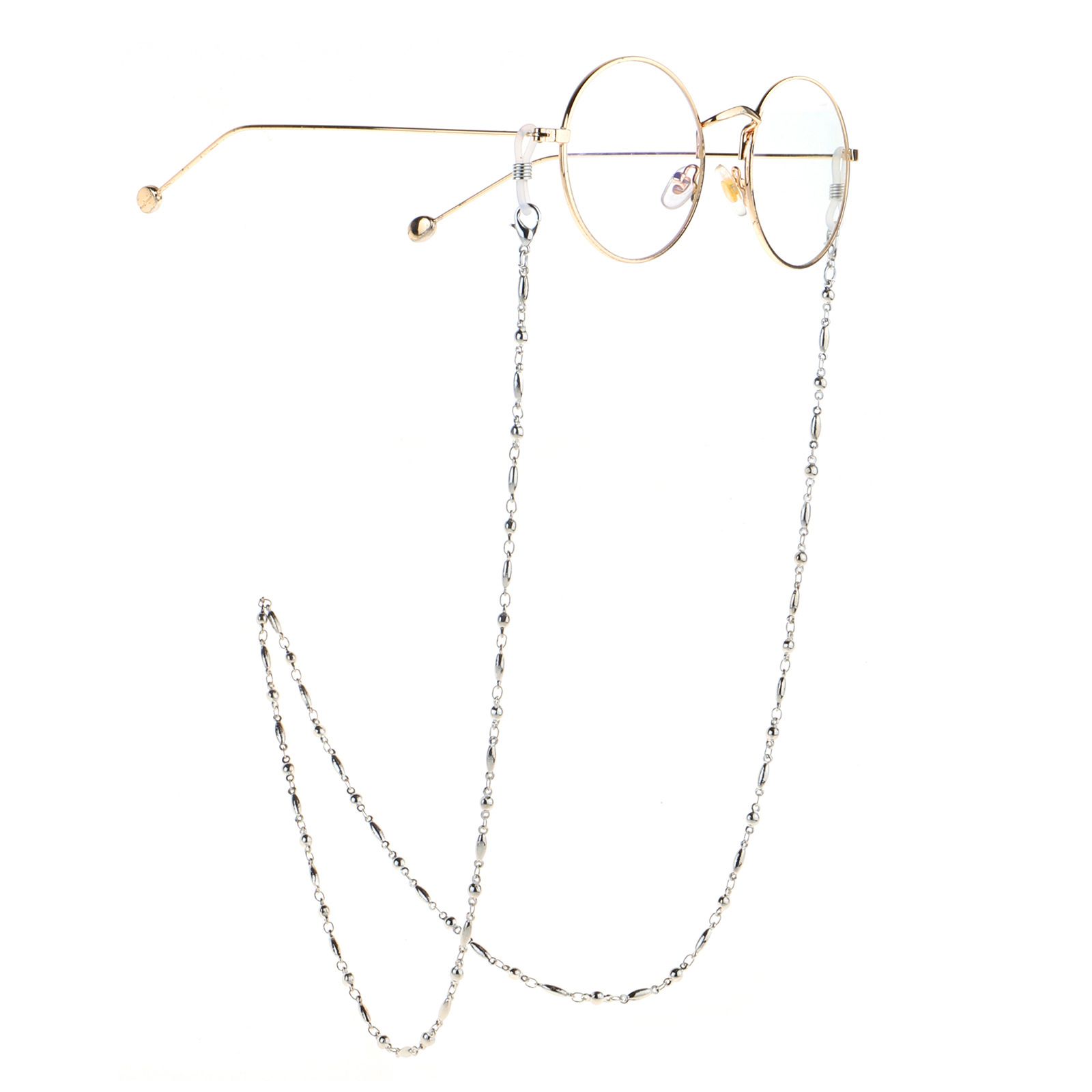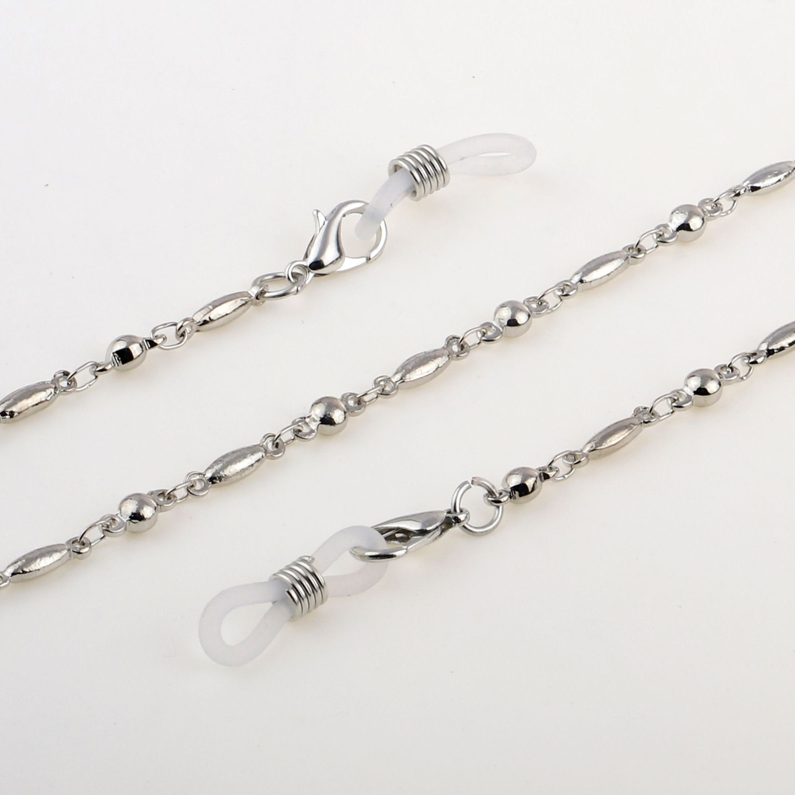 Silver-colored metal non-slip chain, with beads, for glasses and masks GL1015