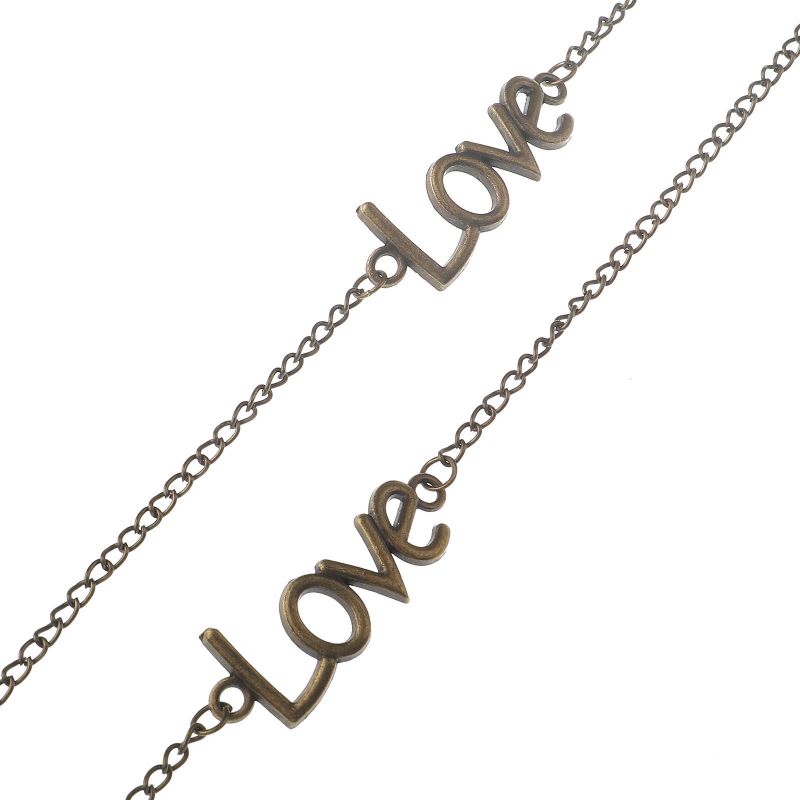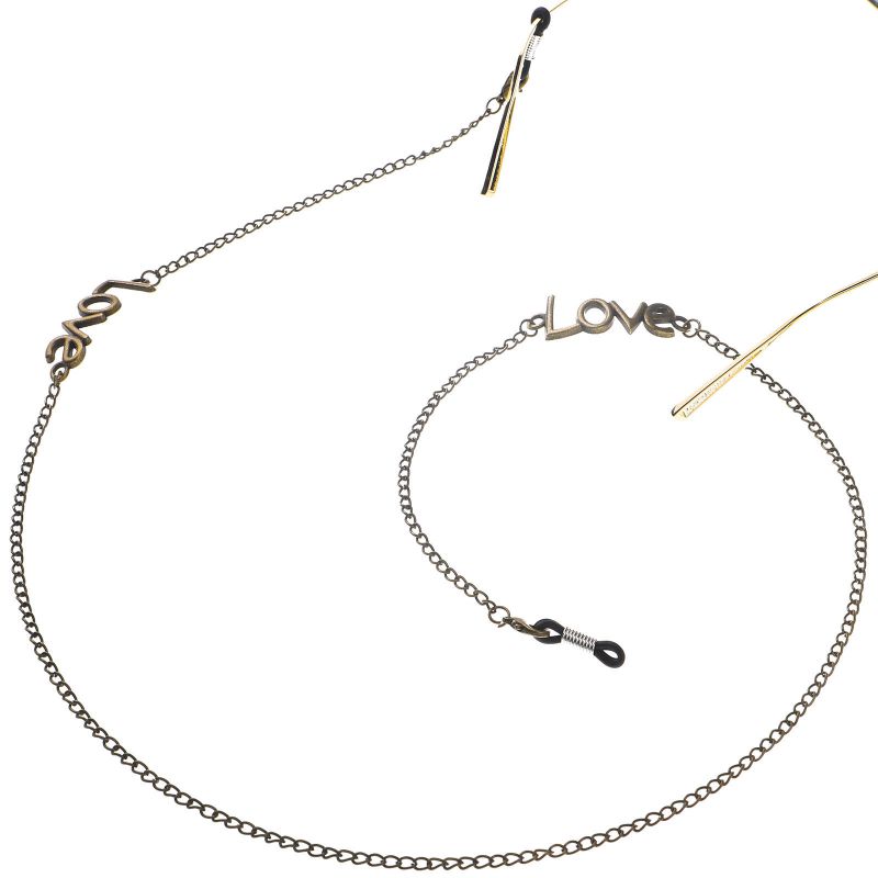 Bronze-colored metal non-slip chain, with the text LOVE, for glasses and masks GL122