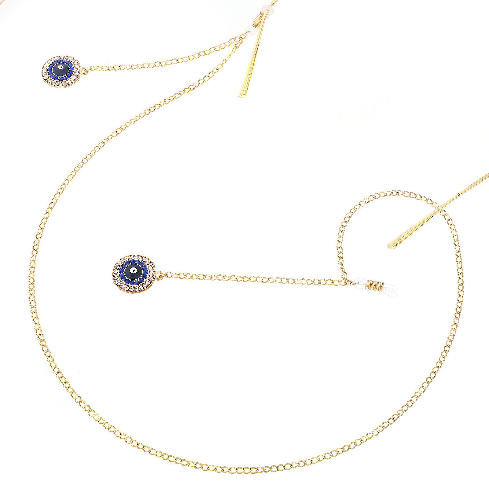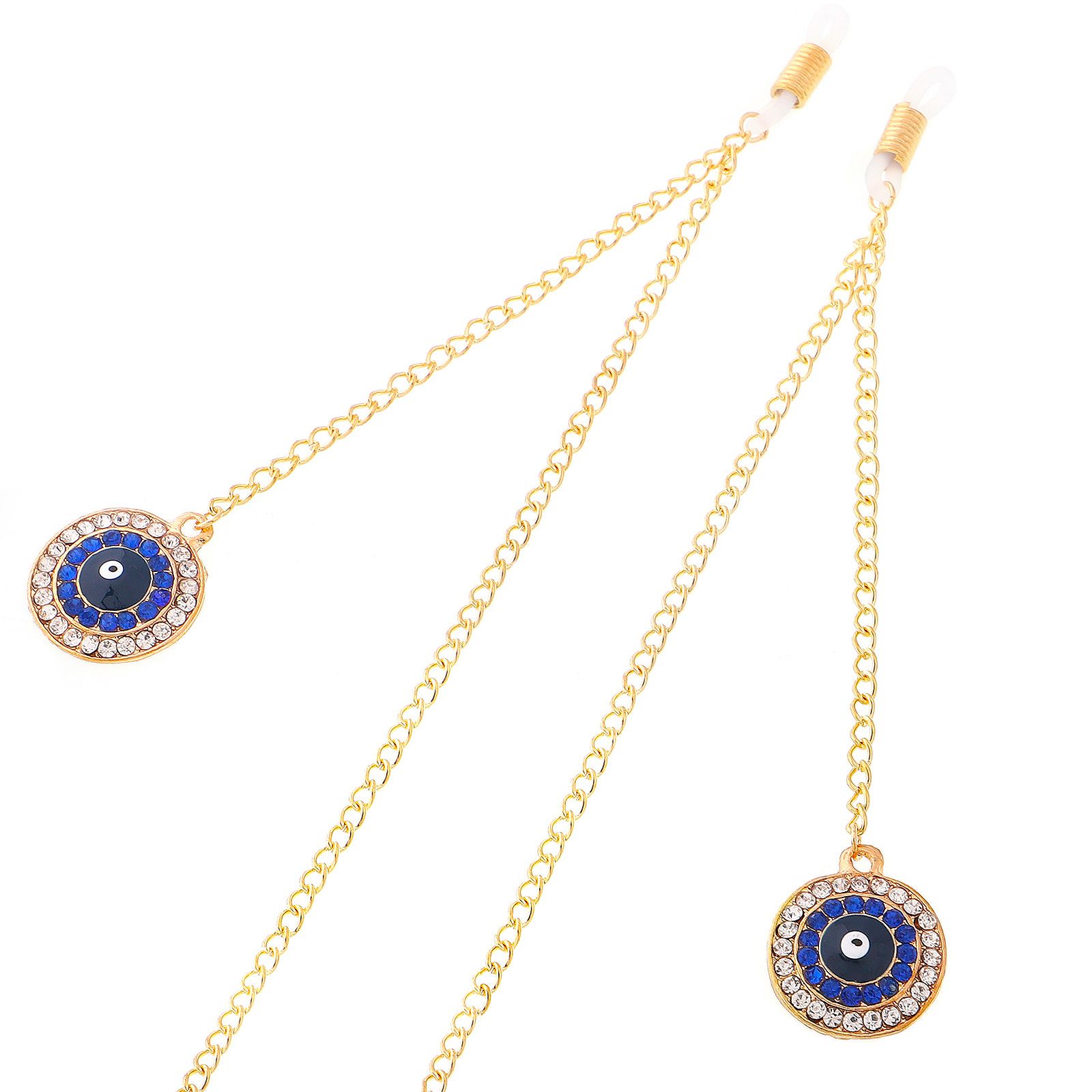 Gold-colored metal non-slip chain, with pendant round with rhinestone, for glasses and masks GL251