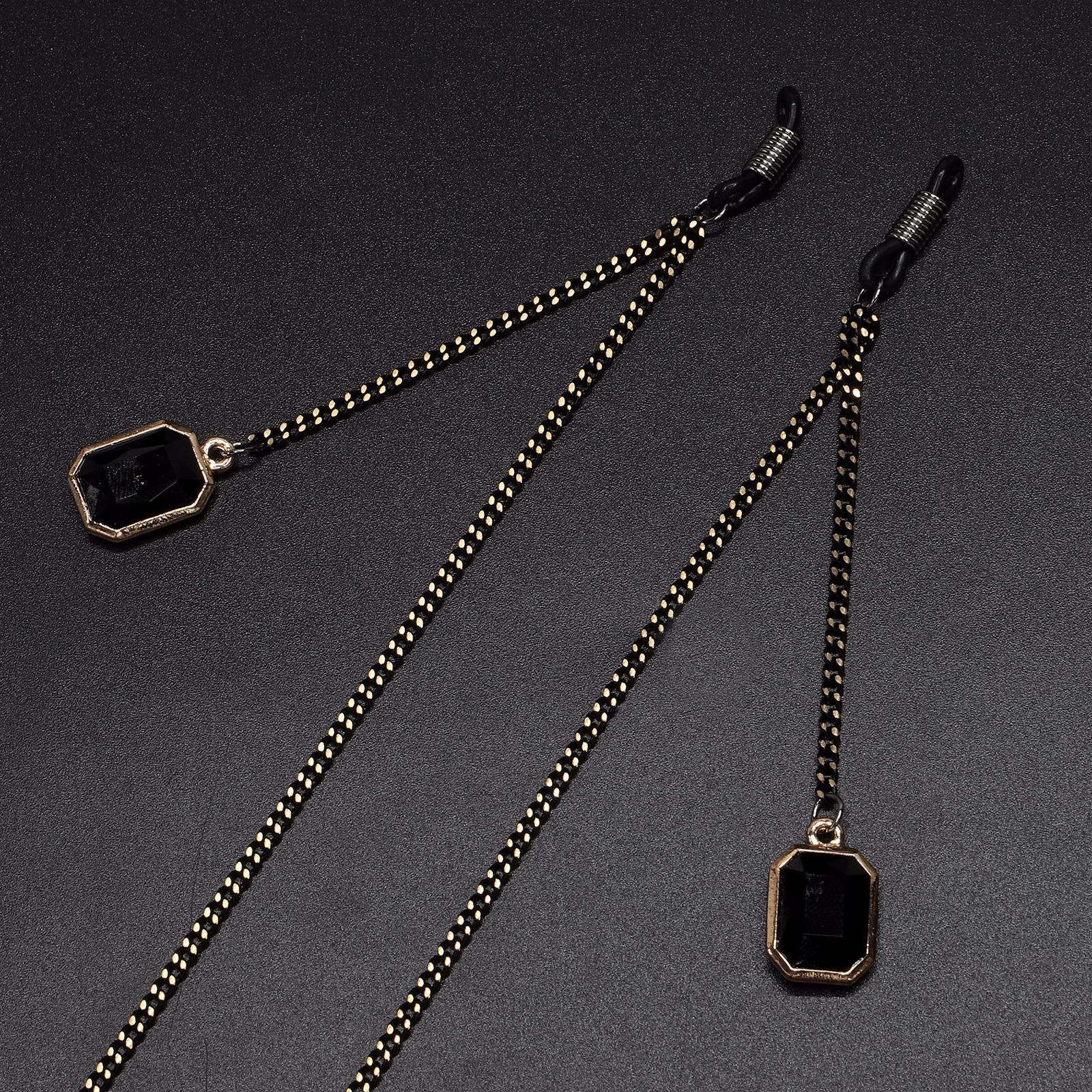 Black-colored metal non-slip chain, with pendant crystal cube, for glasses and masks GL601