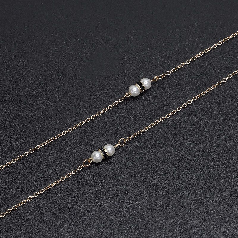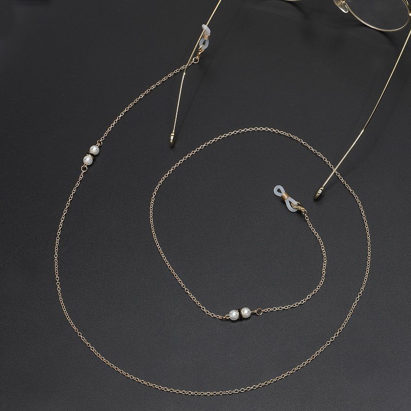 Gold-colored metal non-slip chain, with pearls and rhinestones, for glasses and masks GL624