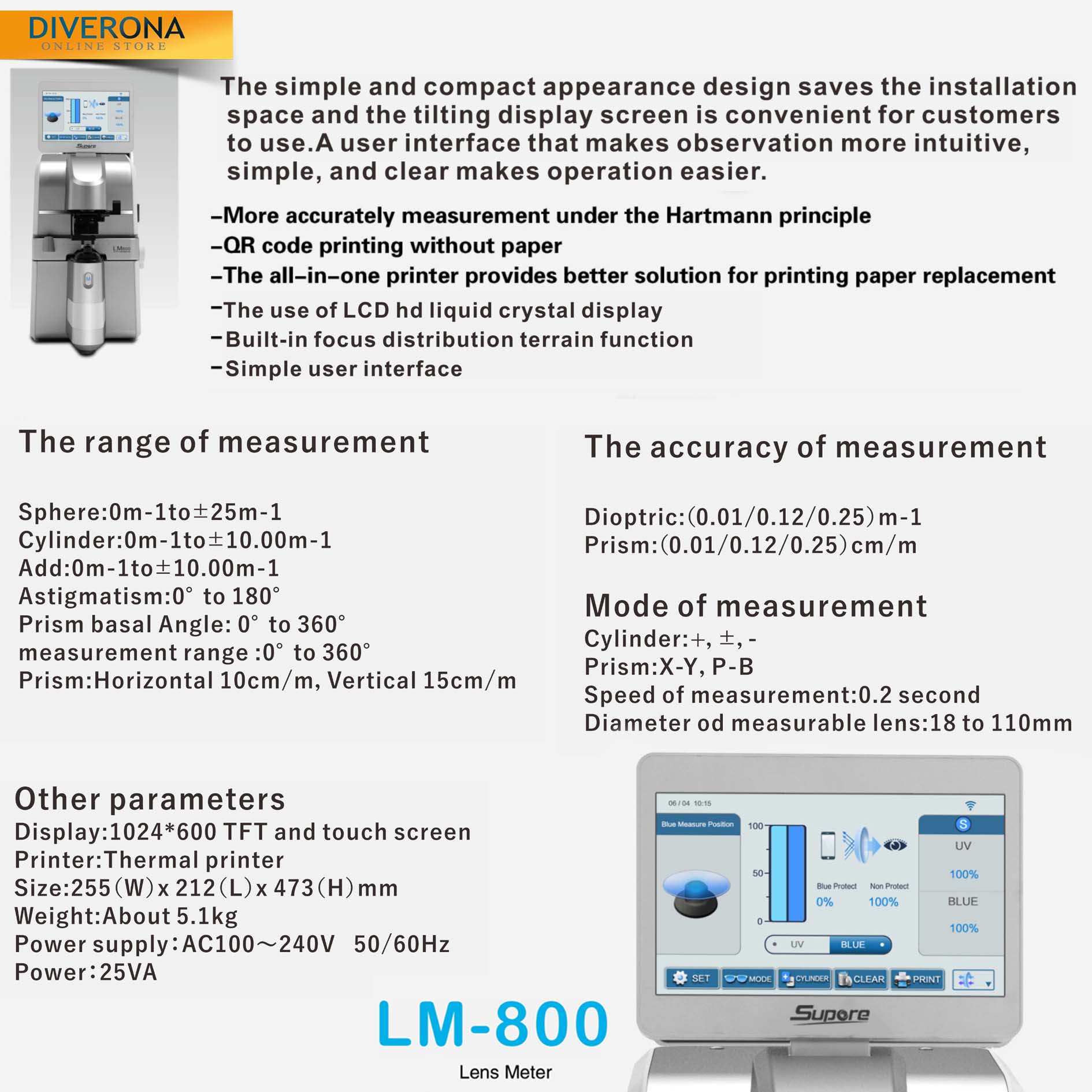 Диоптриметр Supore LM-800 + принтер + измерение UV и синего света