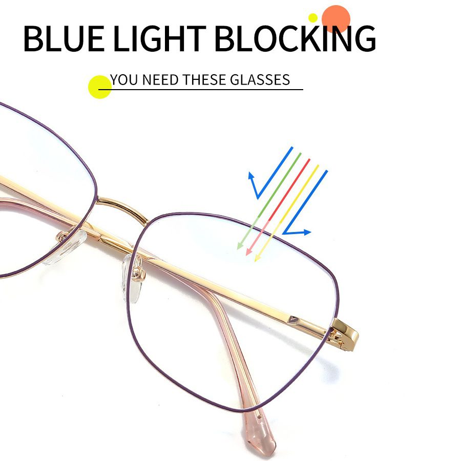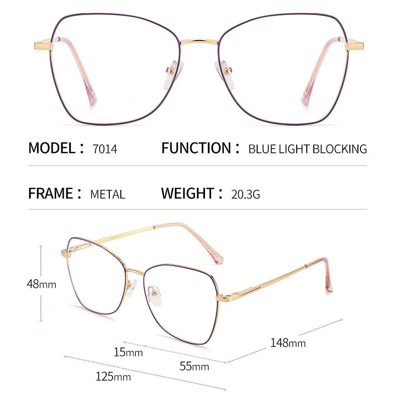 Metal Blue Ray Cut protection women's frame with spring hinges + magnet sunshade clip-on 7014-GT