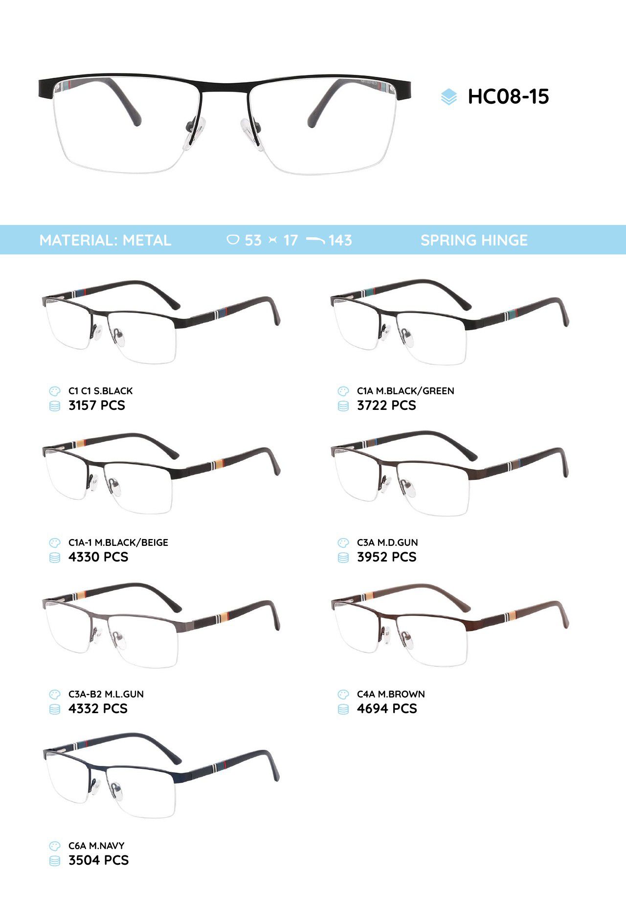 Metal frame with temples made of TR-90 material HC08-15