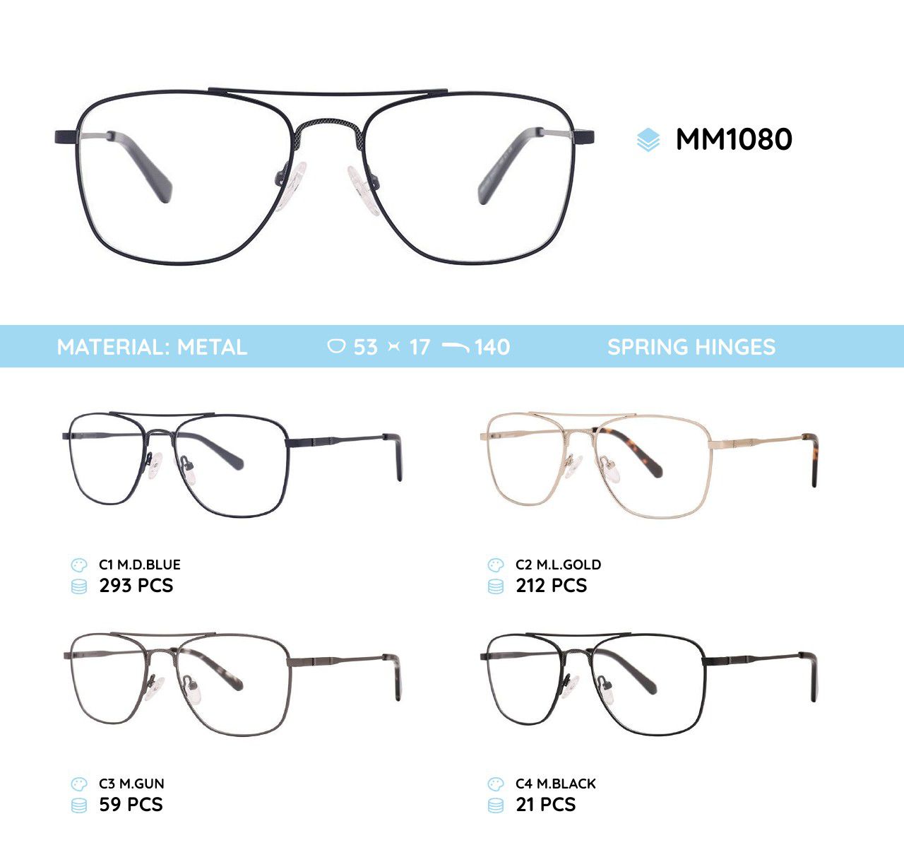 Metal frames for glasses. The material is stainless steel. The frames keep their shape well, at the same time they are flexible. High quality. Frames have good tactile properties and resistant to damage, they are lightweight and hypoallergenic. Many of models are decorated with rhinestones, have elegant temples and flex hinges. Fashionable design. This frames collection of high quality, passes piece control. In our store goods of this category have a low price for wholesale. European Conformity.