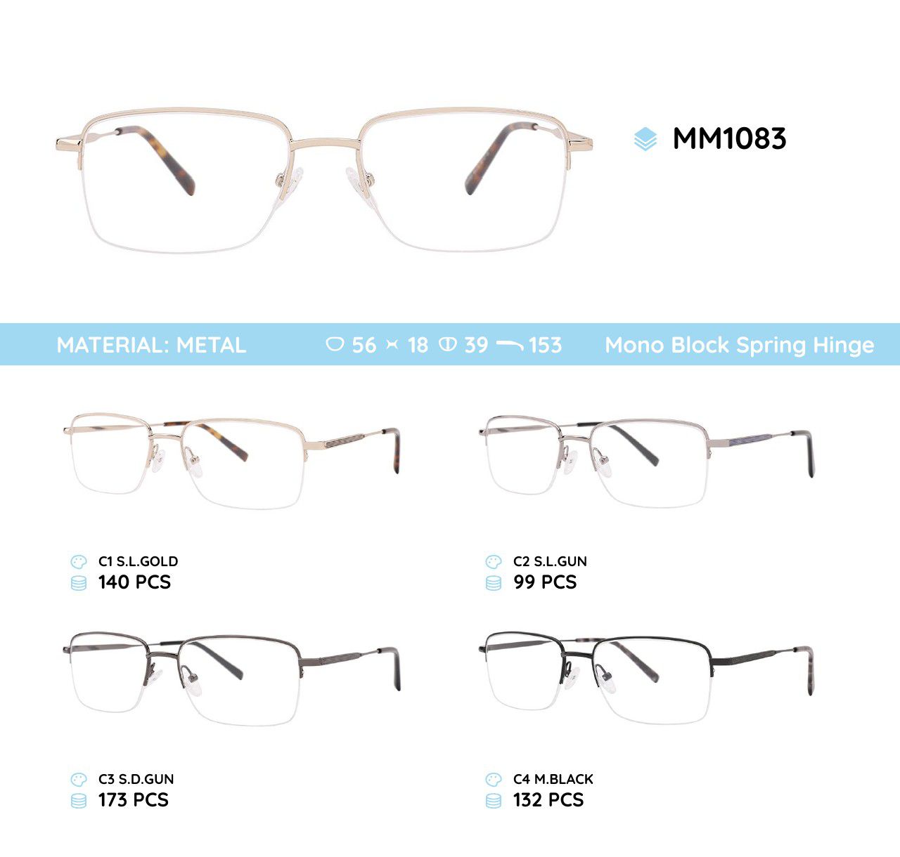 Metal frames for glasses. The material is stainless steel. The frames keep their shape well, at the same time they are flexible. High quality. Frames have good tactile properties and resistant to damage, they are lightweight and hypoallergenic. Many of models are decorated with rhinestones, have elegant temples and flex hinges. Fashionable design. This frames collection of high quality, passes piece control. In our store goods of this category have a low price for wholesale. European Conformity.