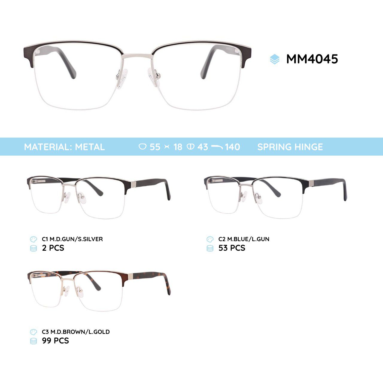 Metal frames for glasses. The material is stainless steel. The frames keep their shape well, at the same time they are flexible. High quality. Frames have good tactile properties and resistant to damage, they are lightweight and hypoallergenic. Many of models are decorated with rhinestones, have elegant temples and flex hinges. Fashionable design. This frames collection of high quality, passes piece control. In our store goods of this category have a low price for wholesale. European Conformity.