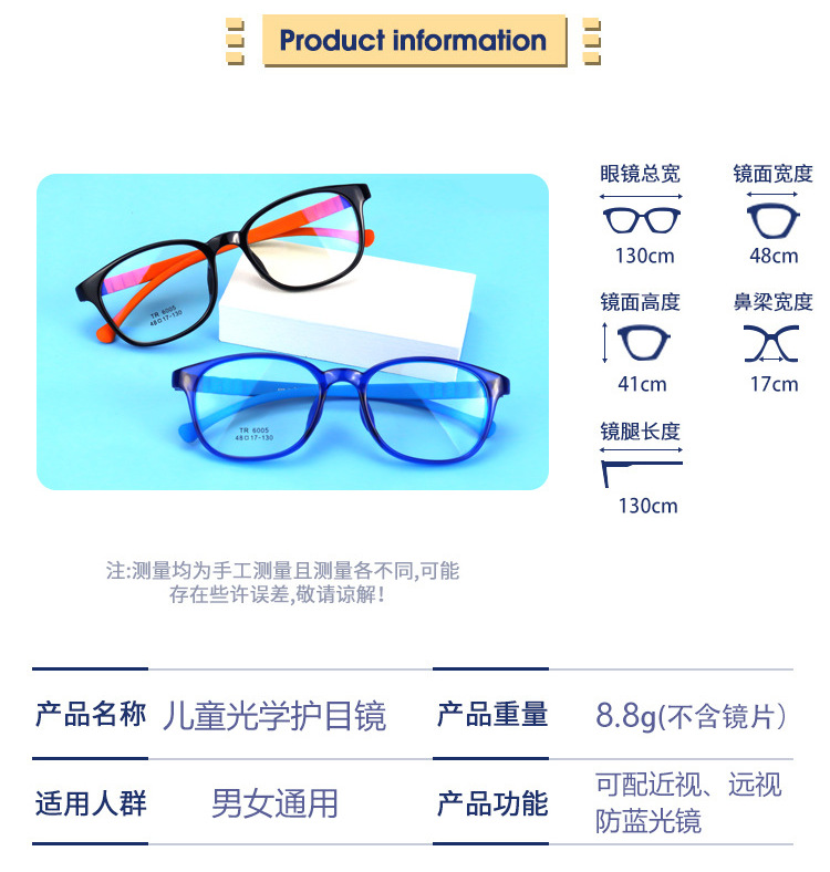 TR-90 (grilamid) eyeglass frames for kids are made of popular material that is in a great demand because of high quality, pleasant tactile properties, resistance to damage, lightweight, heat-resistant and hypoallergenic properties.