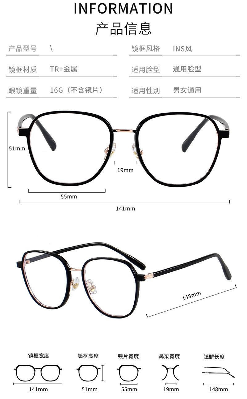 - Size: lens width - 55 mm, bridge - 19 mm, temple - 148 mm