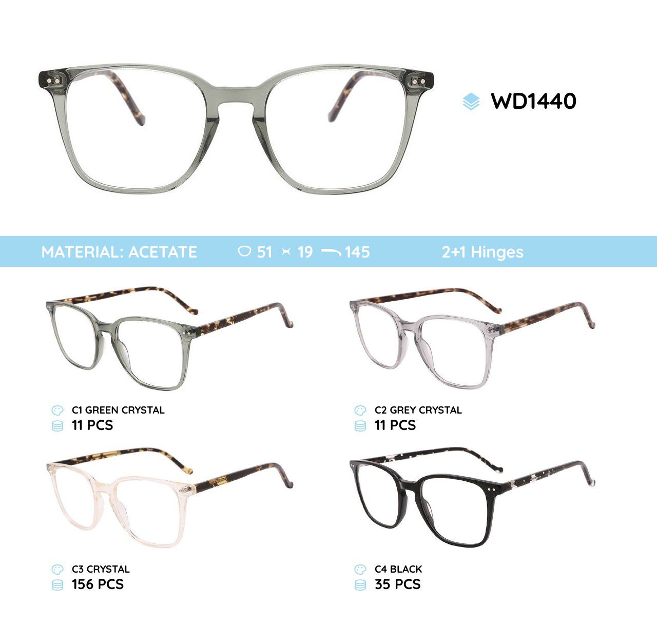 Glasses frames are plastic, acetate, milled. The frames hold their shape well, at the same time are flexible in use when making glasses, are of high quality, have pleasant tactile properties, are resistant to damage, are lightweight, and have hypoallergenic properties. Many models are decorated with rhinestones, with elegant temples and flex hinges. Fashionable design. This collection of high quality frames is individually controlled. Our store offers a low price for goods in this category for wholesale. CE standard (European Conformity).