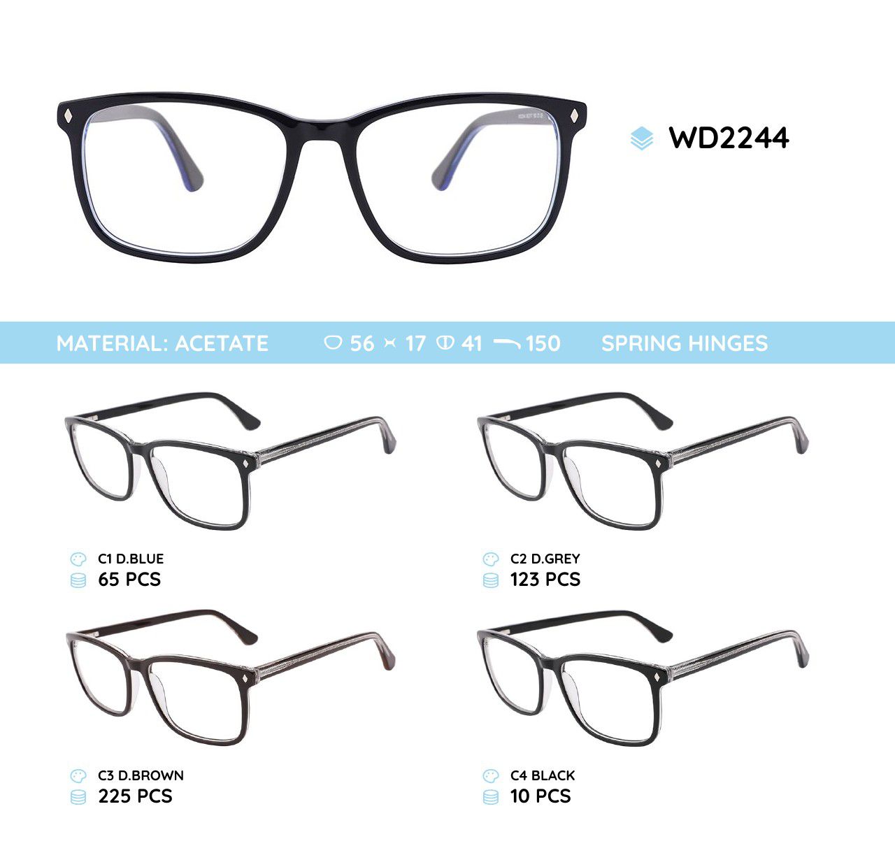 Plastic acetate eyeglasses frame with spring hinges WD2244
