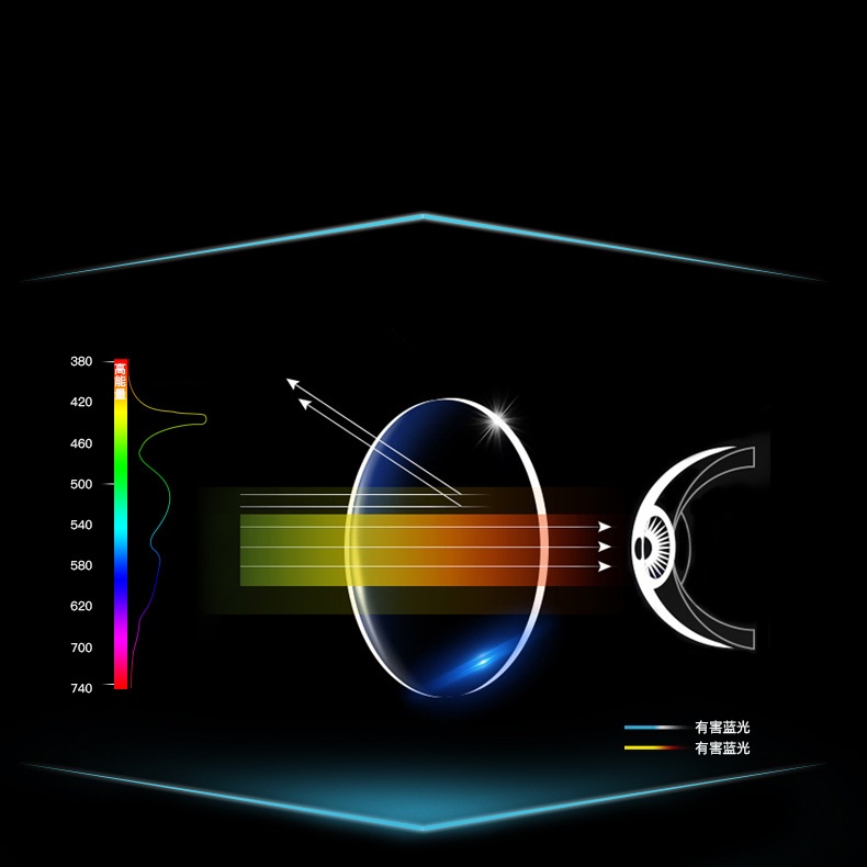 Description: glasses with a Blu ray cut coating that cuts off glare from various light sources
