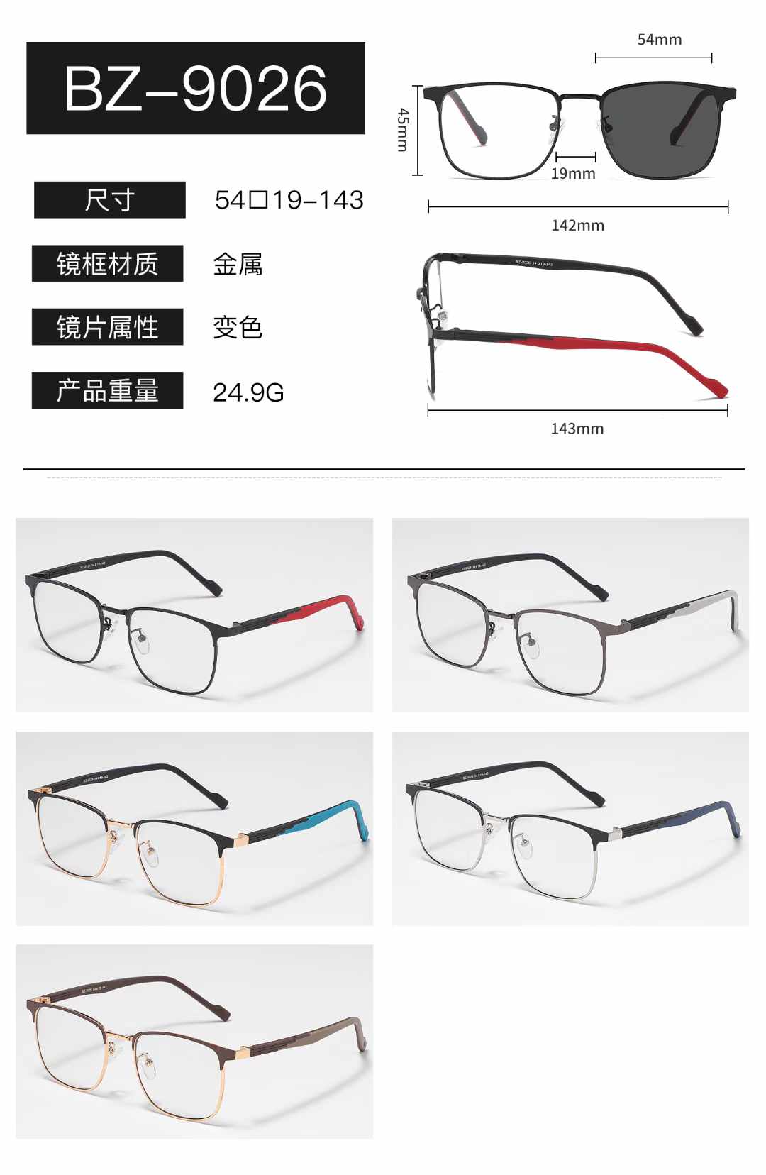 Metal photochromic glasses Wilibolo BZ-9026