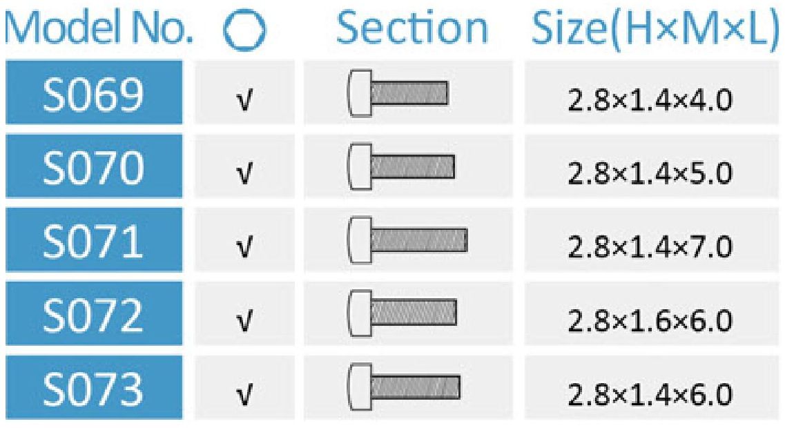 - S070 - 2.8*1.4*5.0 мм, шестигранный