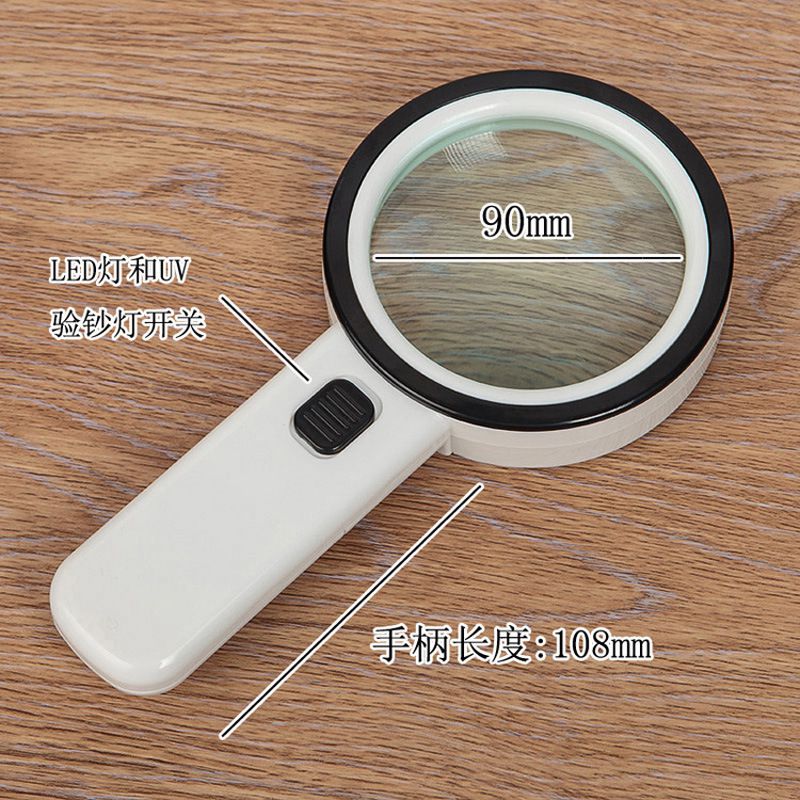 Лупа с универсальной подсветкой, увеличительное стекло с ручкой 2288-90-XX, диаметр: 90 мм, увеличение: 10X