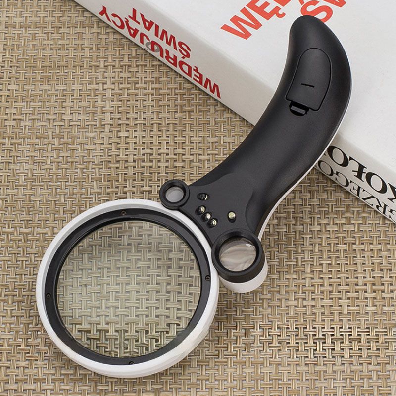 Лупа с универсальной подсветкой, увеличительное стекло с ручкой 600600BH-XX, диаметр 75 мм, увеличение: 2,5X, 25X, 55X