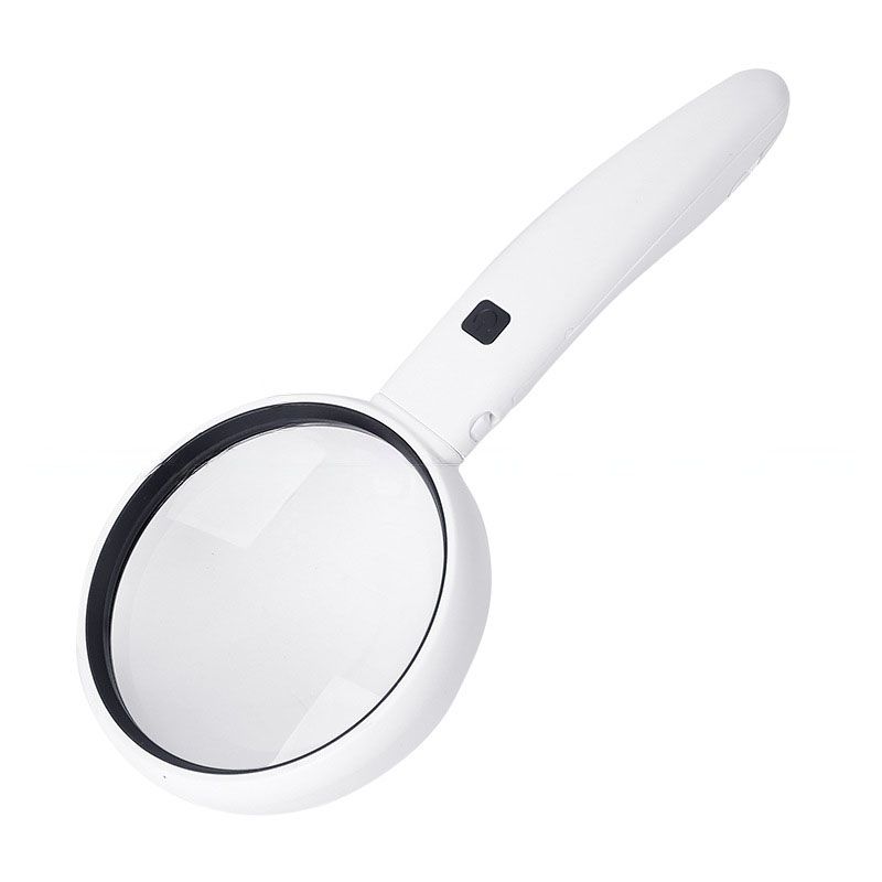 Лупа с универсальной подсветкой, увеличительное стекло с ручкой 77790+75+37-XX, диаметр 90 мм, 75 мм, 37 мм, увеличение: 3,5Х, 5Х, 11Х