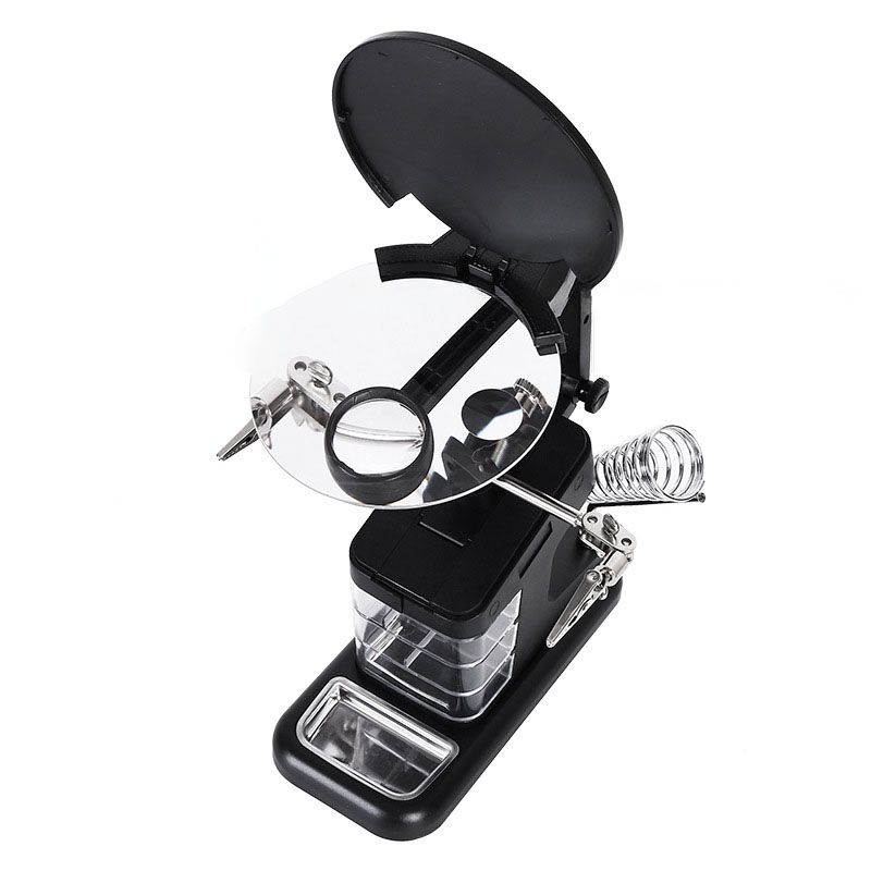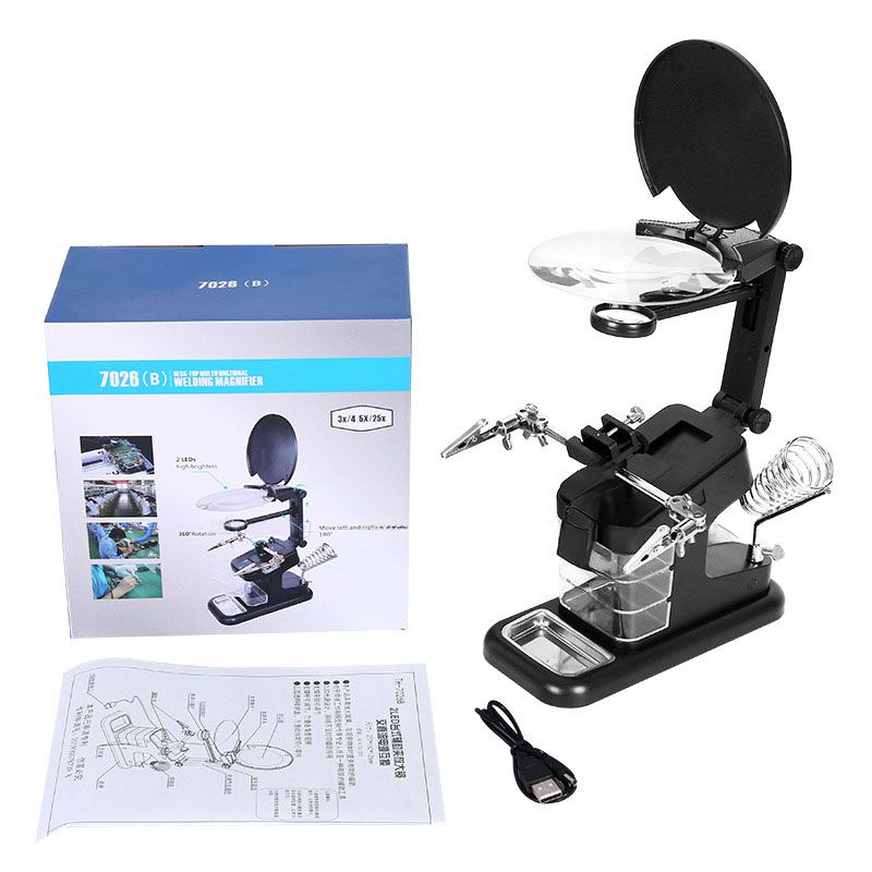The desktop magnifier is a multifunctional device, indispensable for soldering, assembling small parts, jewelry work and other tasks that require high precision. Equipped with several magnification levels, it allows you to examine even the tiniest elements in detail. The main feature of the model is the locking holders that provide stable fixation of objects, freeing your hands for work. The kit includes replaceable attachments that expand the functionality of the device. Thanks to the robust design and stable base, the magnifier is reliable and easy to use. The perfect choice for craftsmen, radio amateurs and jewelers who need a precision tool for detailed processing.