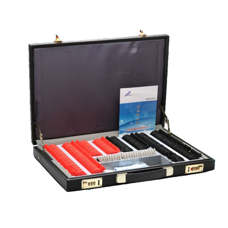 Наборы пробных очковых линз с оправой на 266 линз. Предназначен для обследования отклонений зрения, например, миопия, гиперметропия, астигматизм и пресбиопия, для обследования страбизма и цветовой слепоты. Набор пробных очковых линз используется в офтальмологических отделениях больниц, поликлиник, в оптических магазинах. Удобен в применении, как в стационарах, так и в условиях передвижных кабинетов.