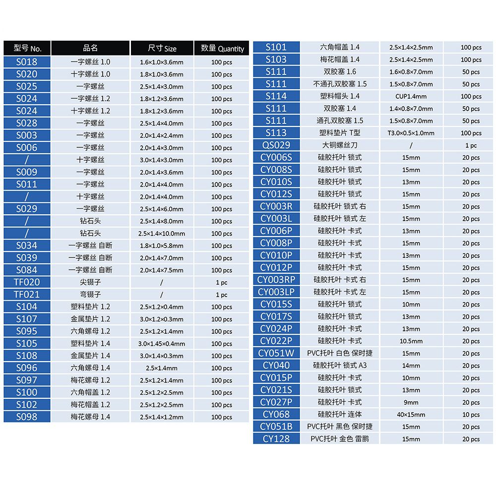 Набор инструментов для ремонта очков SN003 (носоупоры, винты, отвёртки, пинцеты)