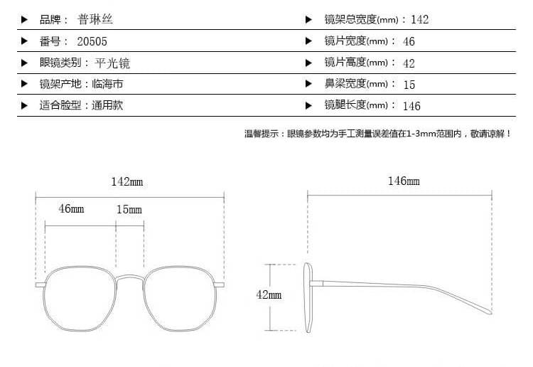 - Размер: ширина линзы - 46 мм, мост - 15 мм, длина заушника - 146 мм, общая ширина - 142 мм, высота линзы - 42 мм