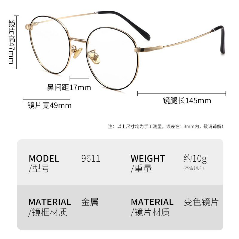 Очки металлические фотохромные с защитой от синего света 9611-2-GT