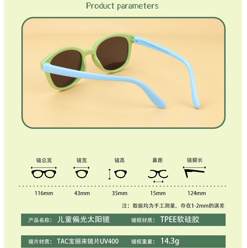 Эти детские солнцезащитные очки изготовлены из мягкого, гипоаллергенного силикона, что обеспечивает комфортное ношение в течение всего дня. Они оснащены полностью защищающими от УФ-лучей линзами, которые защищают глаза вашего ребенка от вредного солнечного излучения. Яркие и стильные, очки доступны в различных цветах, что делает их привлекательными для детей. Благодаря своей гибкости и прочности, они идеально подходят для активного отдыха на пляже или во время игр на открытом воздухе.