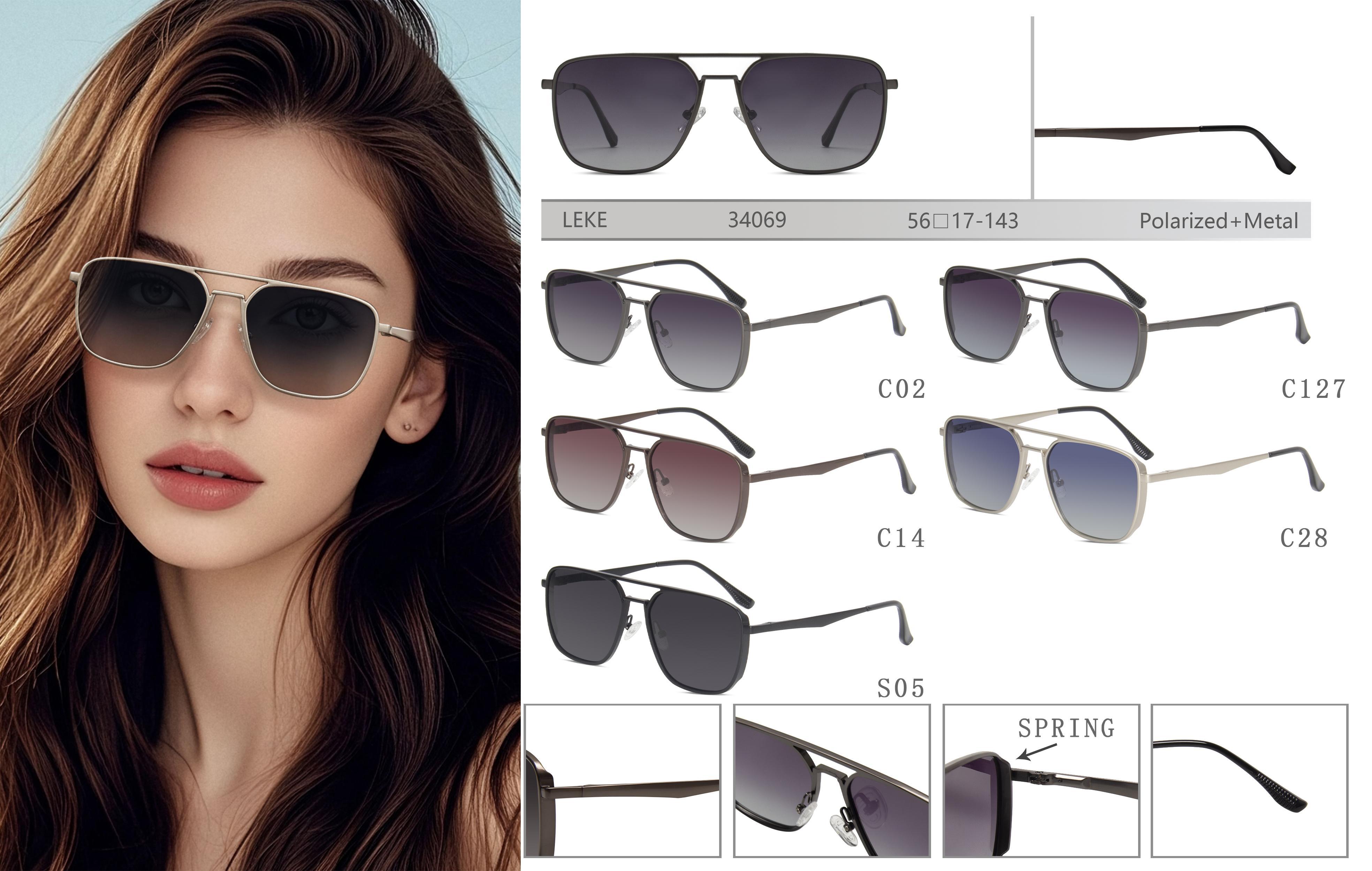 Солнцезащитные поляризационные женские металлические очки Leke LK34069