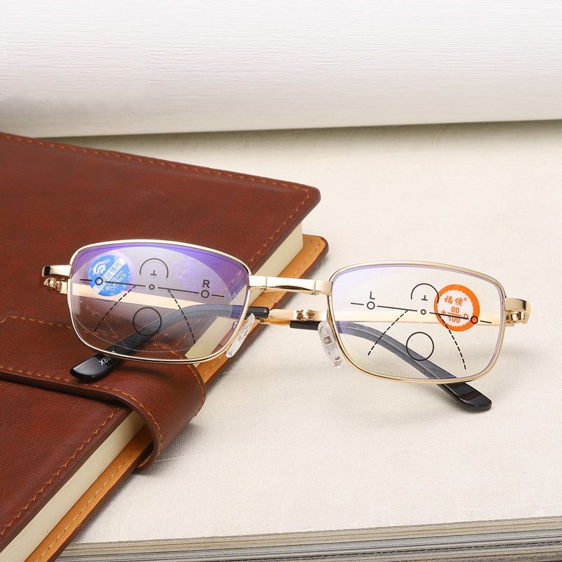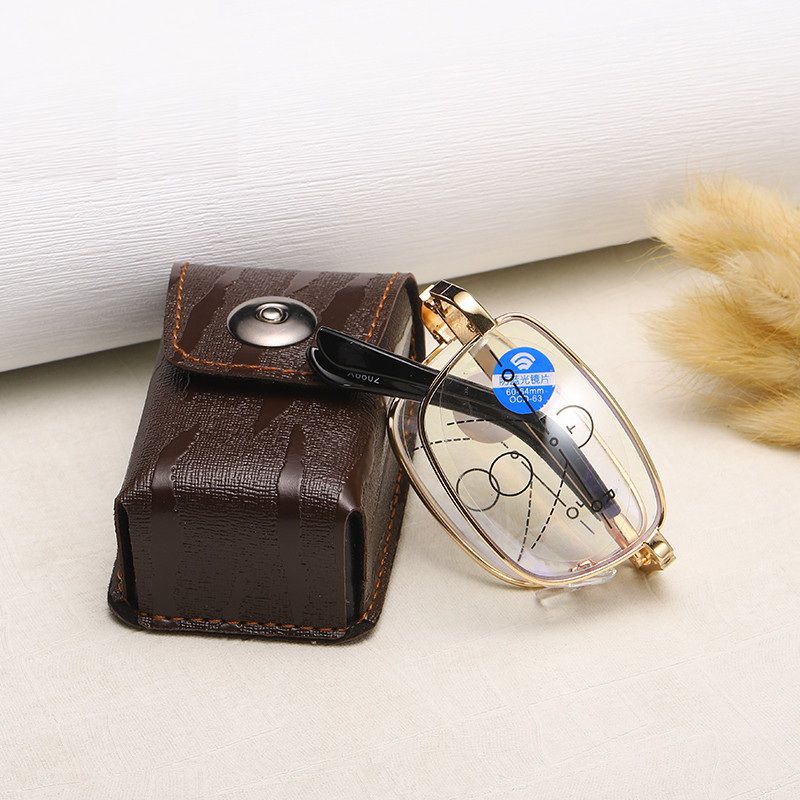 Очки металлические складные мультифокальные для чтения FL8802 с защитой Blue ray cut с футляром, диоптрии от +1.00 до +3.50, РМЦ=62-64