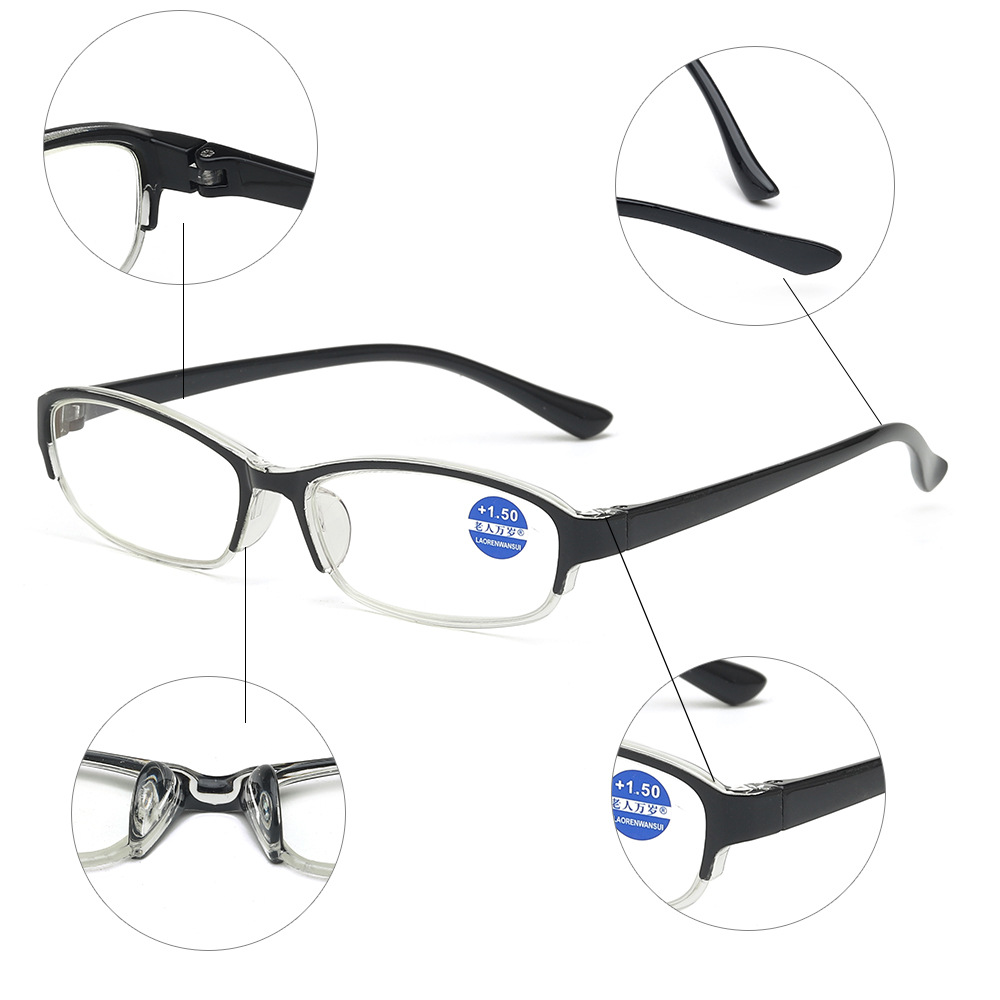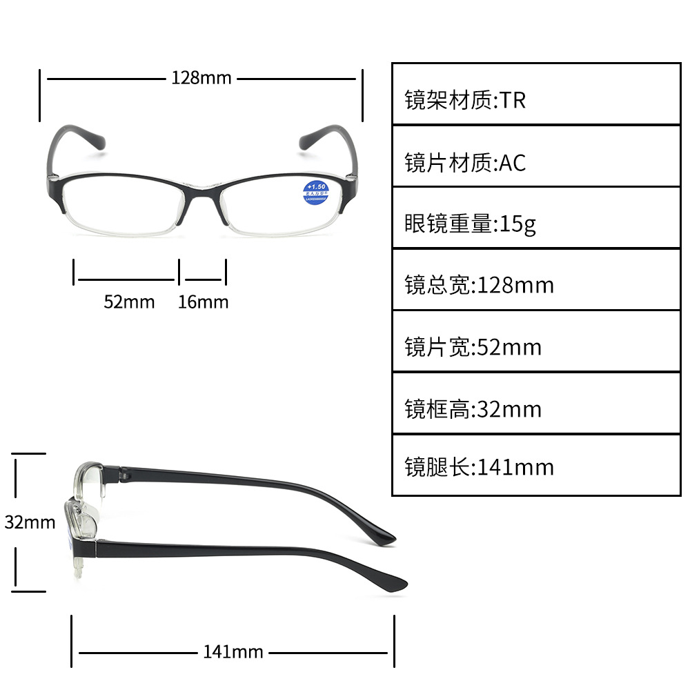 Очки пластиковые полуободковые для чтения вблизи WYM641, с защитой от синего света, UV400, от +1.00 до +4.00