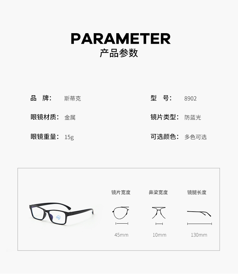 - Размер: ширина линзы - 45 мм, мост - 10 мм, длина заушника - 130 мм