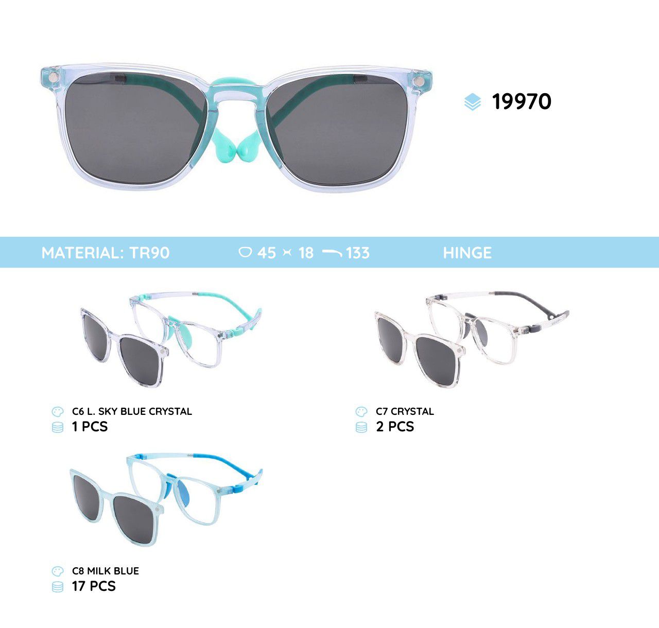 Оправа пластиковая детская из материала TR-90 с солнцезащитной насадкой (клипон) 19970