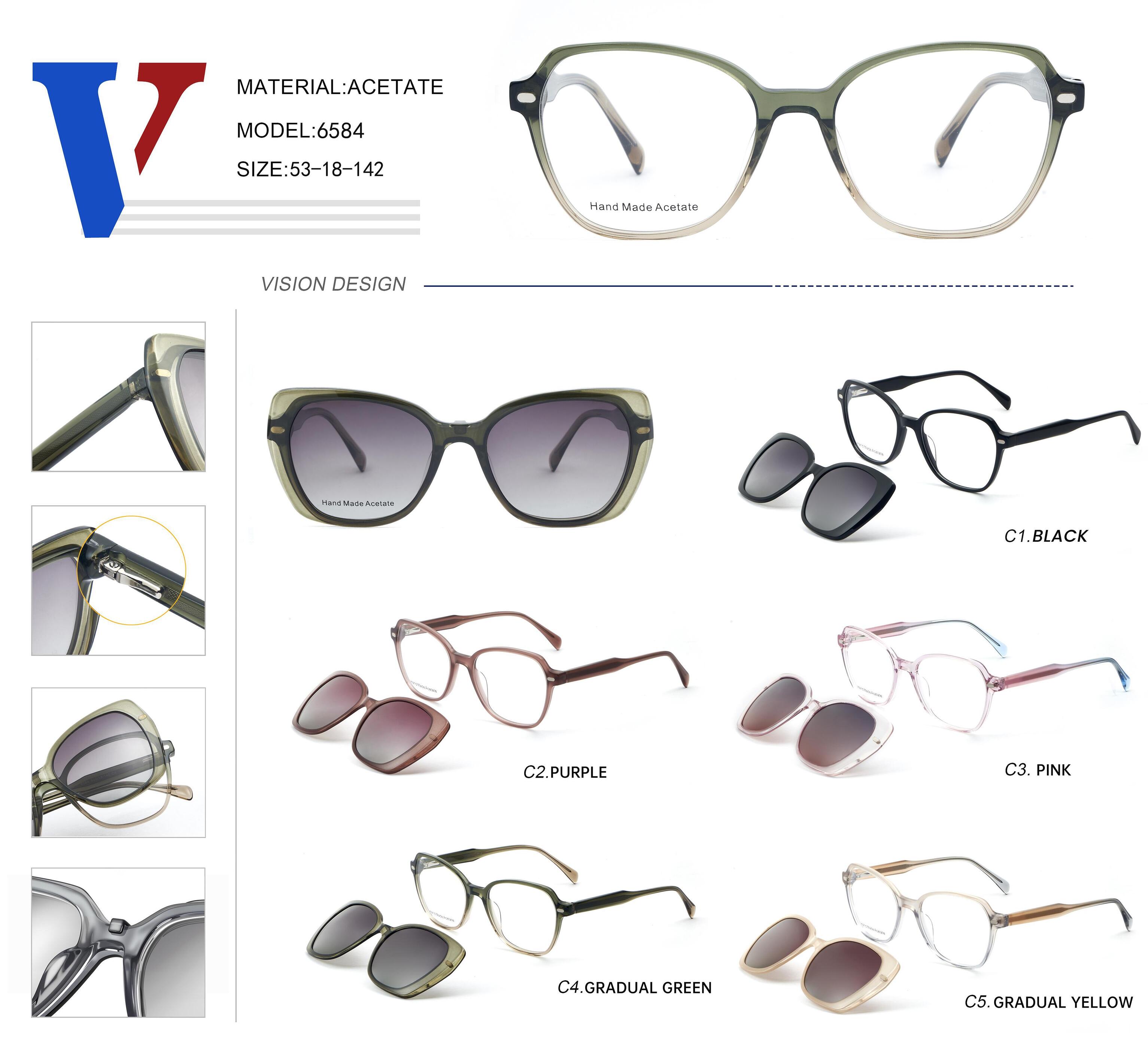 Оправа пластиковая из ацетата с флексом + поляризационная солнцезащитная насадка 6584-DA