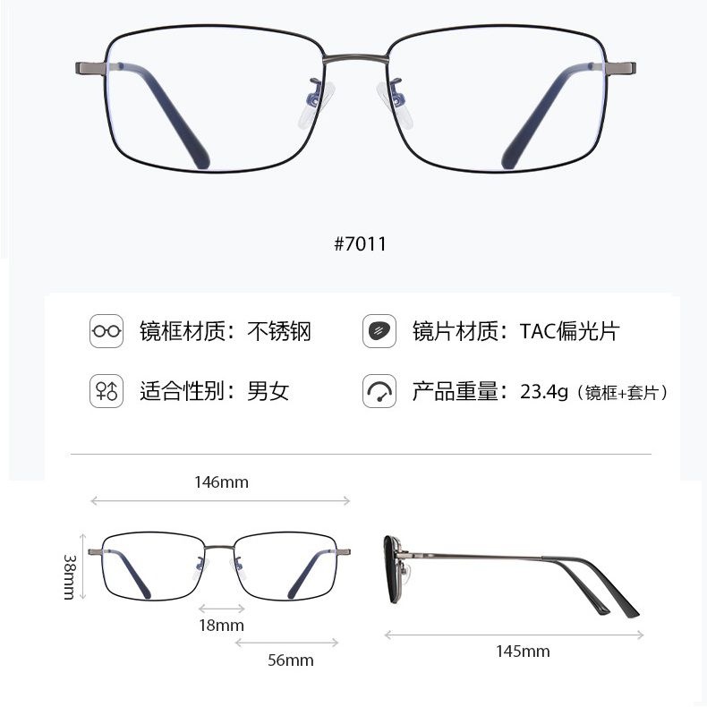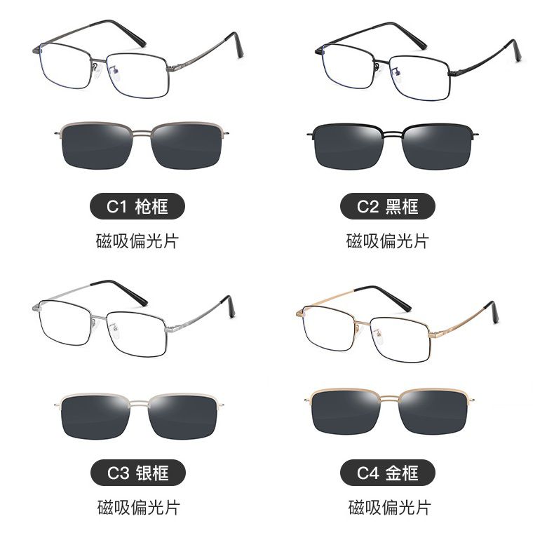 Оправа металлическая мужская + магнитная солнцезащитная насадка (клипон) 7011-GT