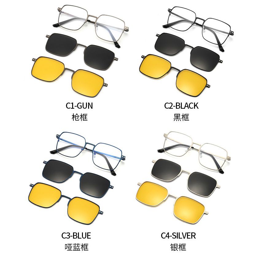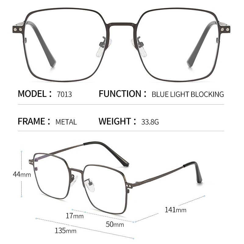 Оправа металлическая мужская с защитой от синего света + 2 магнитных солнцезащитных насадки (клипон) 7013-GT