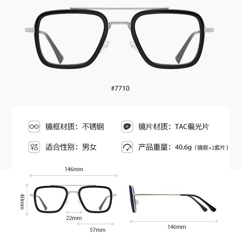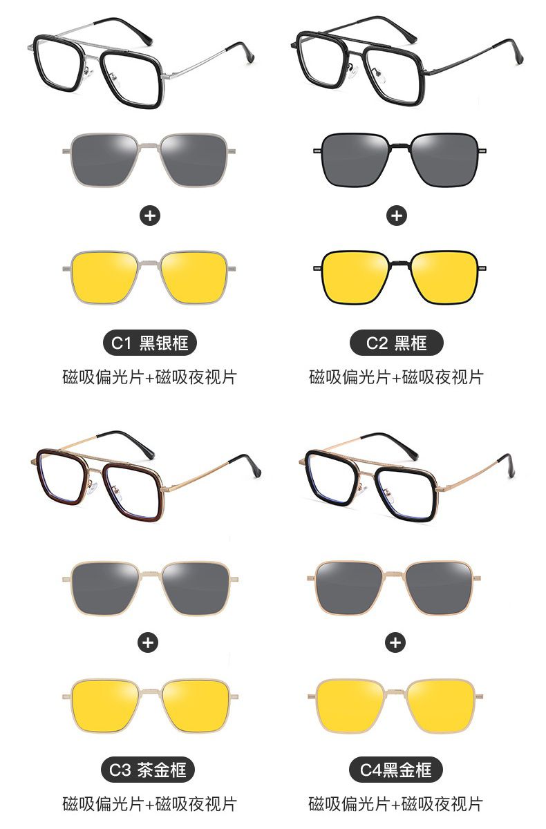 Оправа металлическая с защитой от синего света + 2 магнитные солнцезащитные насадки (клипон) 7601-GT
