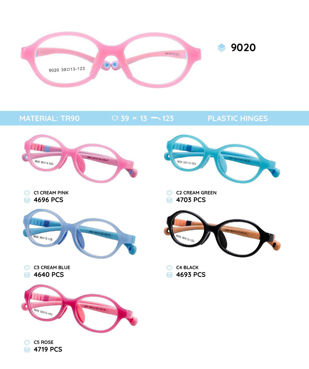 Оправа для очков пластиковая из материала TR90 детская 9020