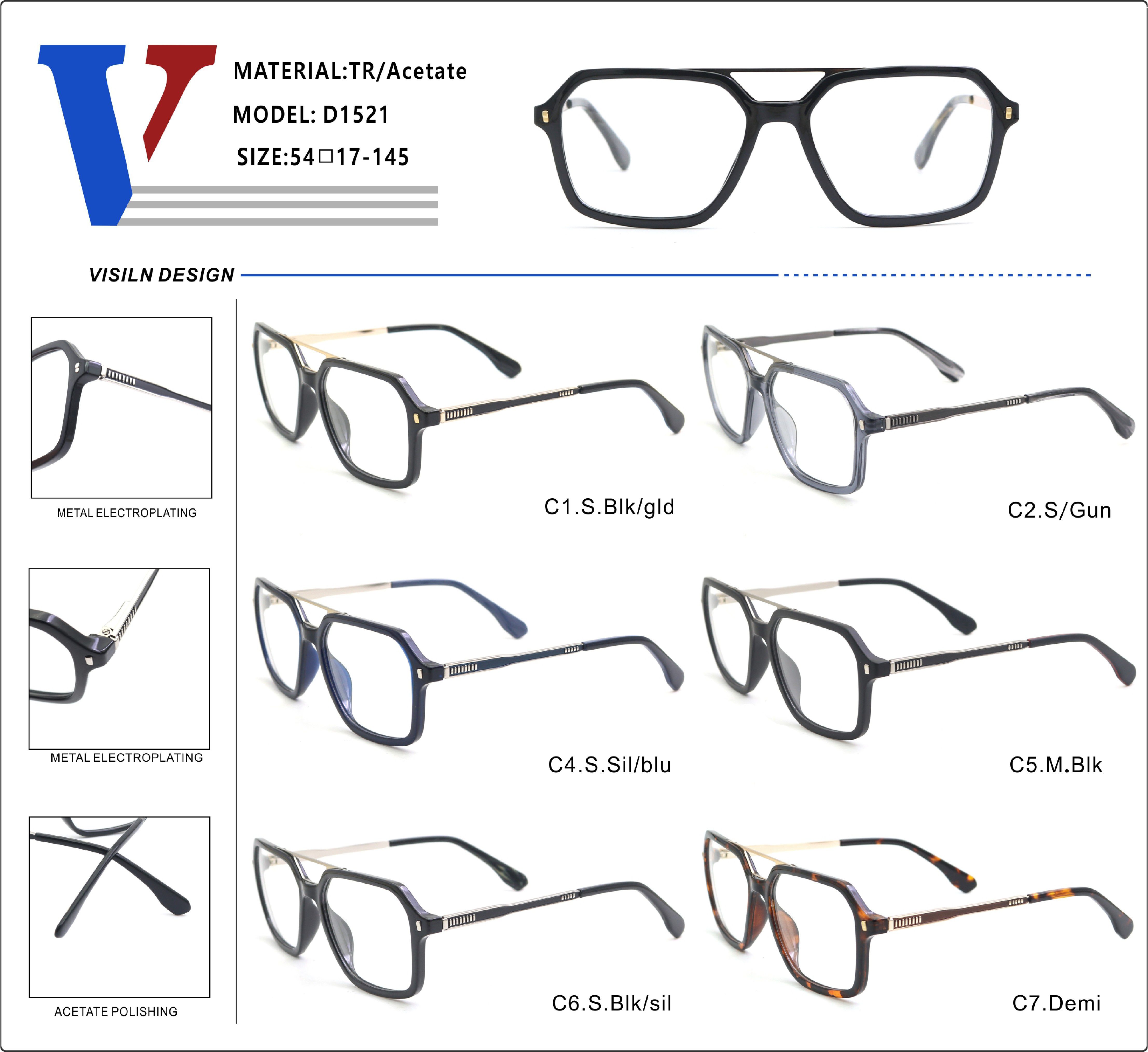 Оправа пластиковая из ацетата TR90 + металл с флексом D1521-DA