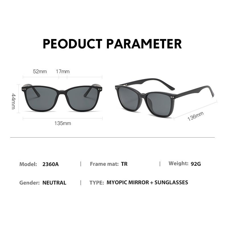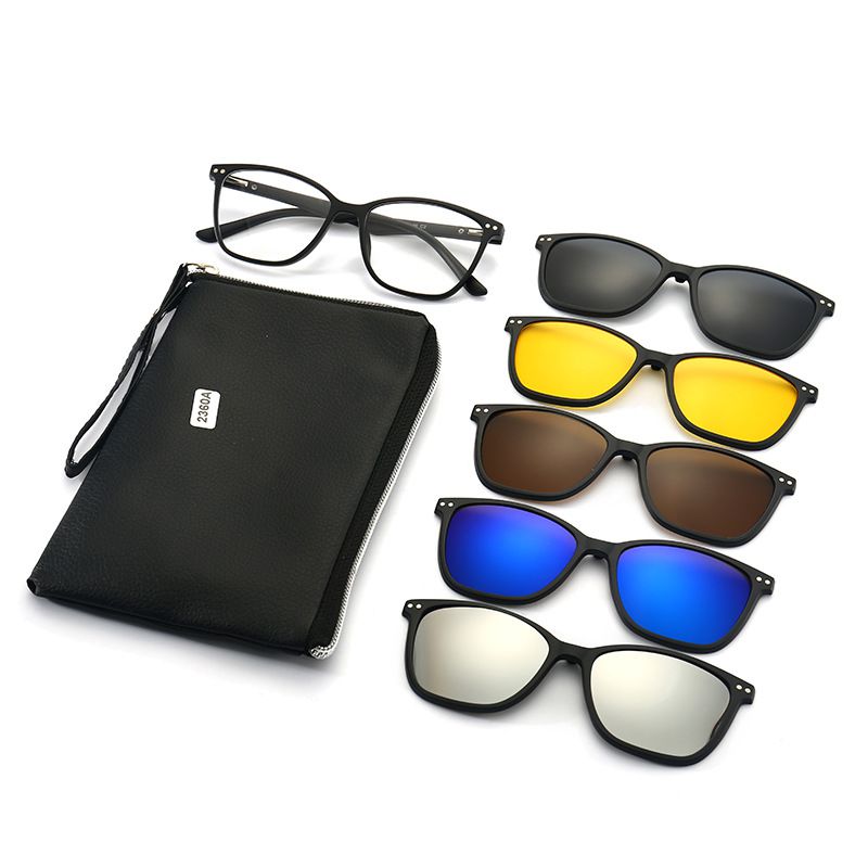- Комплект: оправа пластиковая + 5 солнцезащитных насадок + кожаная сумка