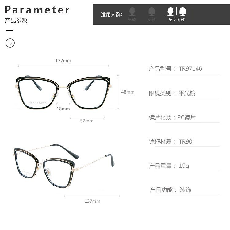 Оправа для очков комбинированная (металл + TR90) с защитой от синего света, с флексом FA87146