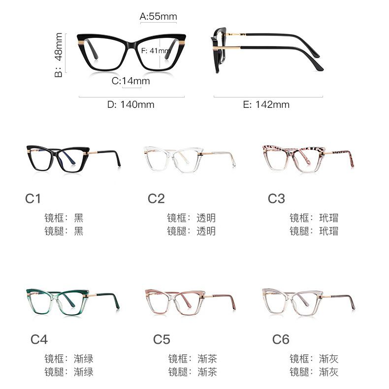 Оправа женская пластиковая из материала TR90, линзы с защитой от ультрафиолета и синего света FOCUS FCS2271