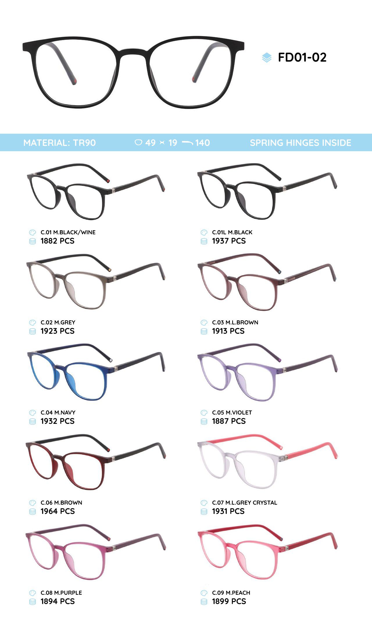 Оправа пластиковая из материала TR-90 FD01-02