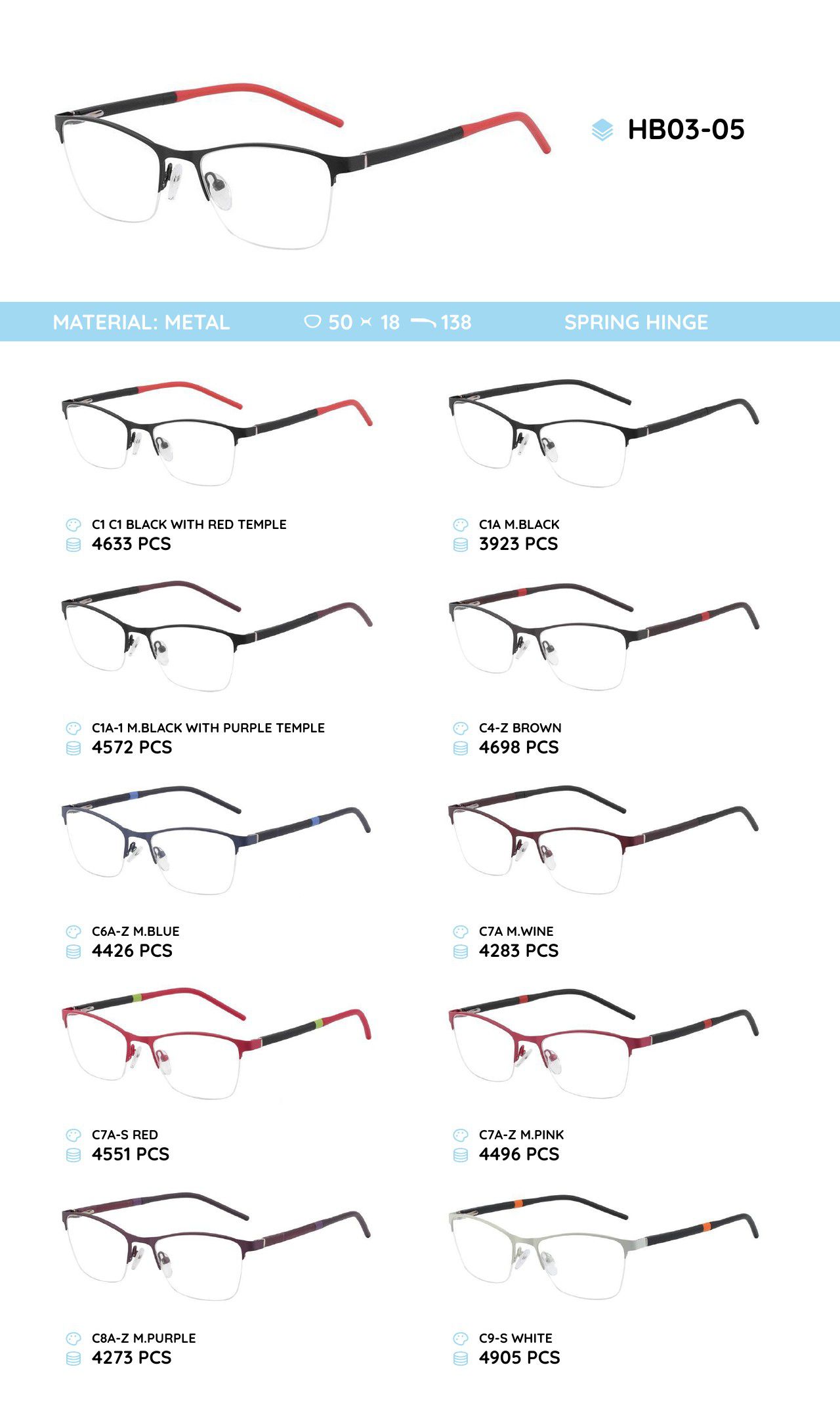 Металлическая оправа с дужками из материала TR-90 HB03-05
